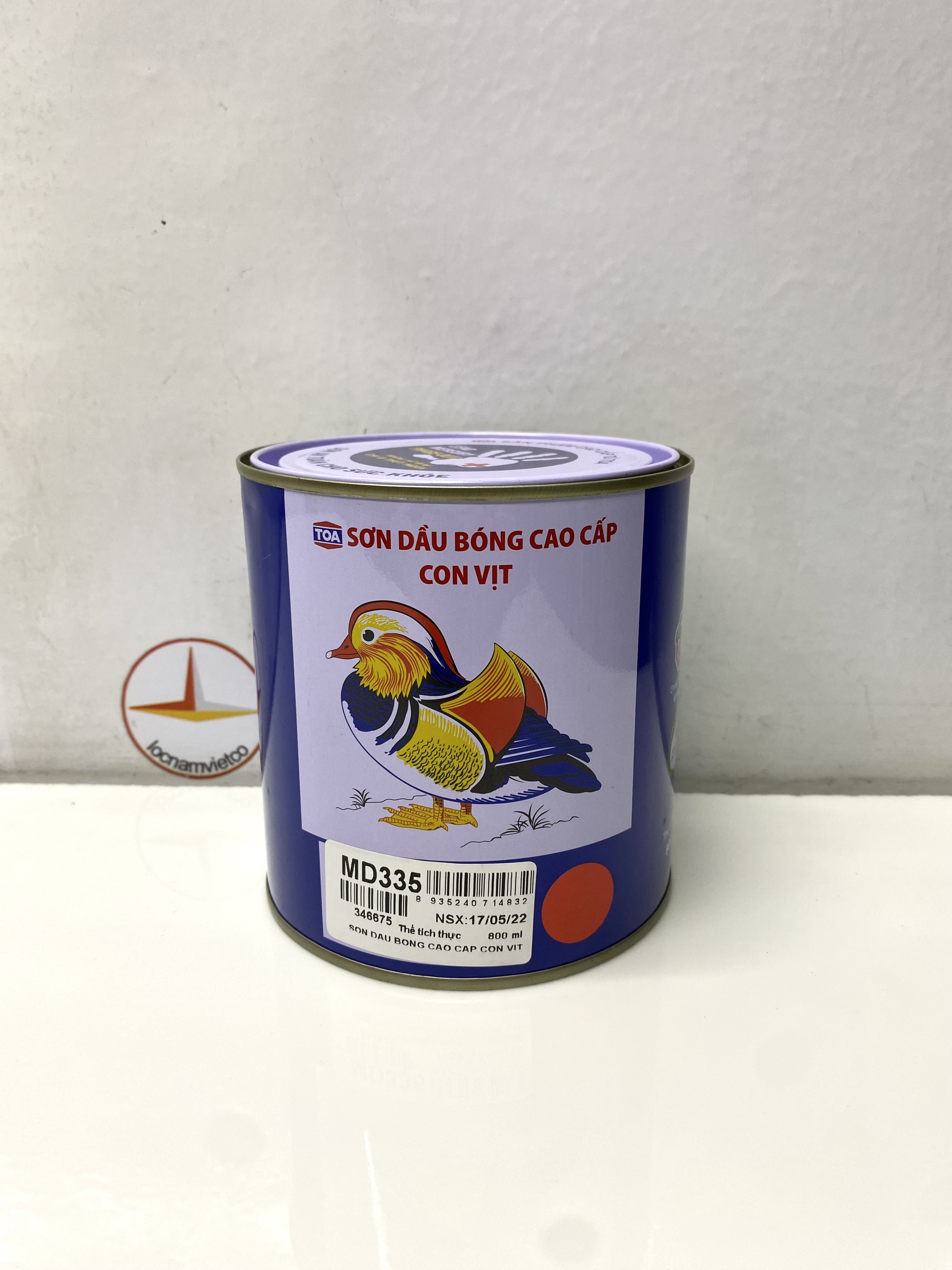 Mua tại TiktokSơn dầu cao cấp Toa hiệu Con Vịt màu đỏ MD335_800ML Sơn dầu bóng cao cấp Con Vịt (Mandarin Duck) là loại sơn Alkyd chất lượng cao, không sử dụng Chì & Chất gây hại, là loại sơn an toàn cho sức khoẻ với các tính năng: Khô nhanh, màng sơn bóng đẹp, độ phủ cao, chống nấm mốc, màu sắc tươi đẹp.