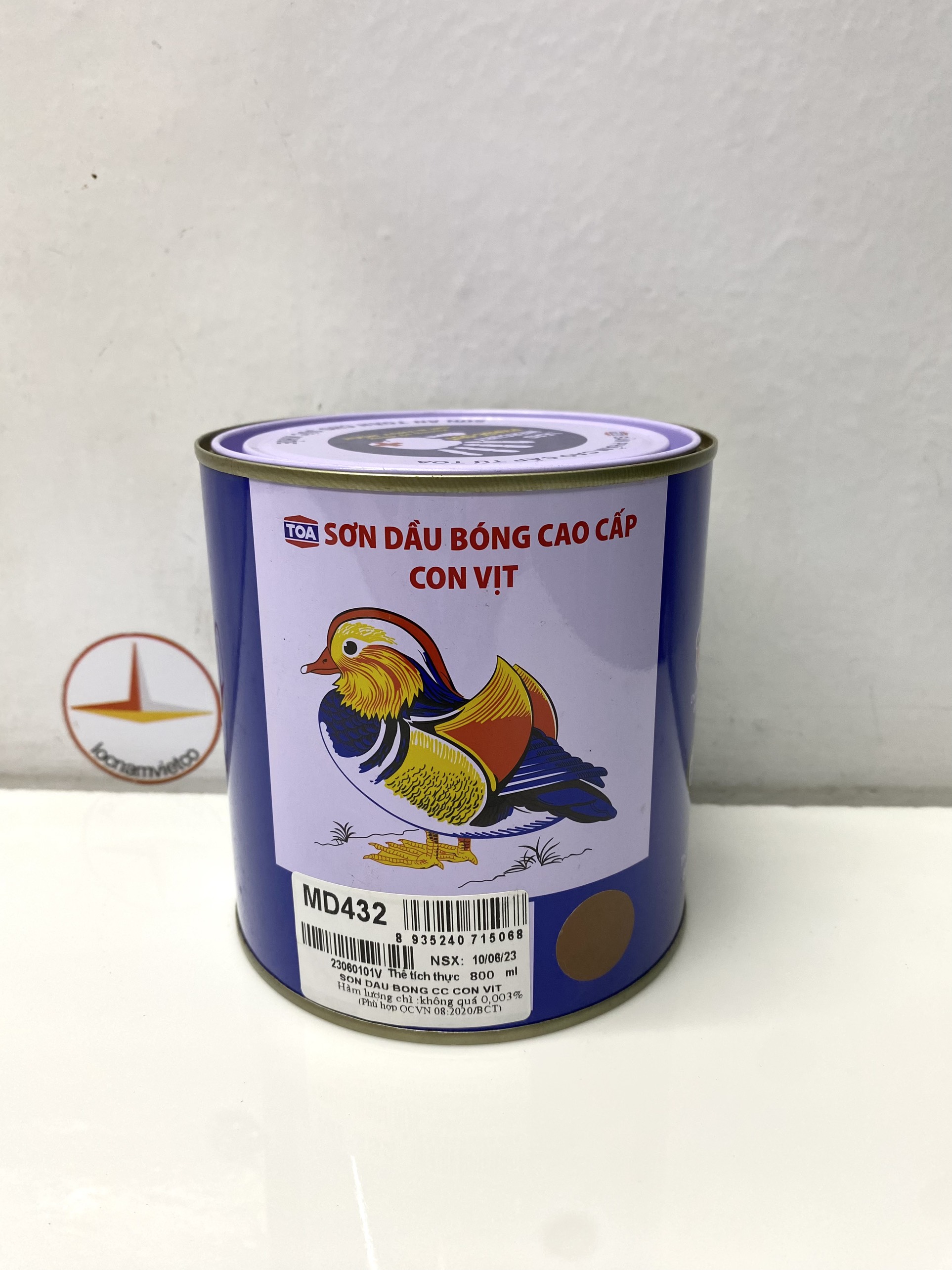 Mua tại TiktokSơn dầu cao cấp Toa hiệu Con Vịt màu nâu MD432_800ML Sơn dầu bóng cao cấp Con Vịt (Mandarin Duck) là loại sơn Alkyd chất lượng cao, không sử dụng Chì & chất gây hại, là loại sơn an toàn cho sức khoẻ với các tính năng: Khô nhanh, màng sơn bóng đẹp, độ phủ cao, chống nấm mốc, màu sắc tươi đẹp.