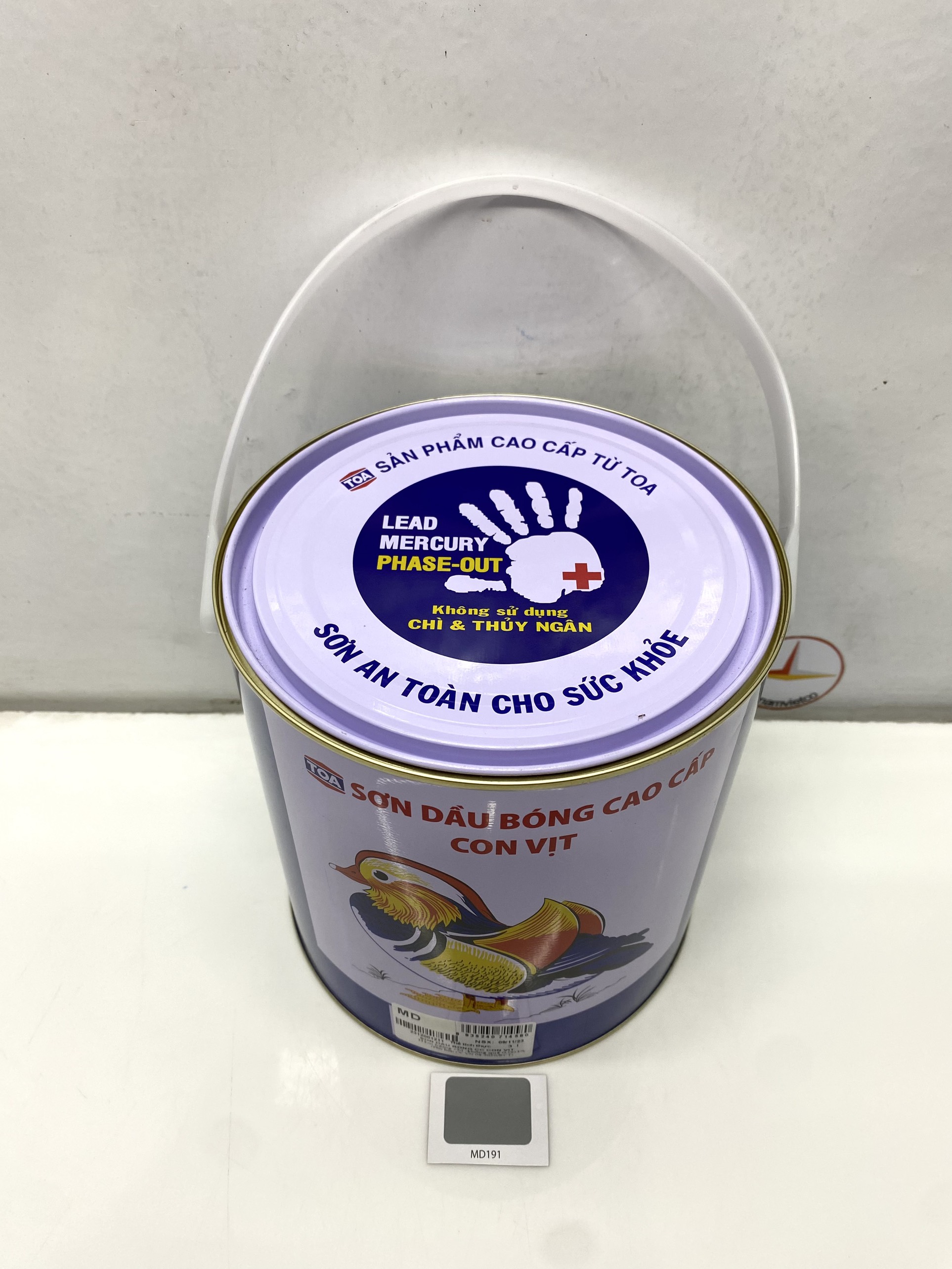 Mua tại TiktokSơn dầu cao cấp Toa hiệu Con Vịt màu xám MD191_3L Sơn dầu bóng cao cấp Con Vịt (Mandarin Duck) là loại sơn Alkyd chất lượng cao, không sử dụng Chì & Chất gây hại, là loại sơn an toàn cho sức khoẻ với các tính năng: Khô nhanh, màng sơn bóng đẹp, độ phủ cao, chống nấm mốc, màu sắc tươi đẹp.