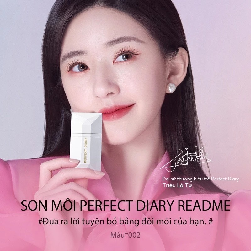 Thương hiệu PERFECT DIARY Sản phẩm: Son môi #Readme Là dòng sản phẩm khẳng định tạo kiểu cho đôi môi của bạn Thiết kế giống như một tấm thiệp, son nhung và son rất nhẹ