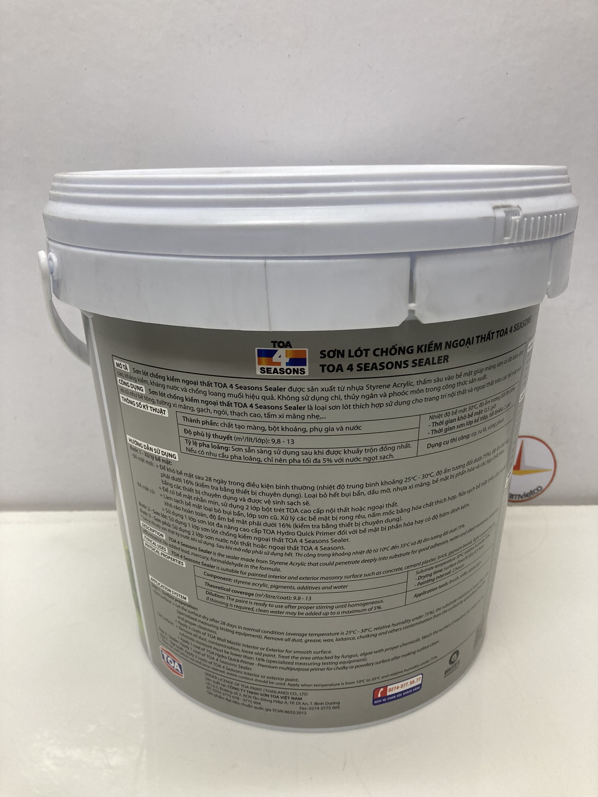 - Chống loang muối hiệu quả MỤC ĐÍCH SỬ DỤNG: Sơn lót chống kiềm ngoại thất TOA 4 Seasons Sealer là sơn lót chống kiềm dùng ngoài nhà, thích hợp cho bề mặt cũ và mới như bê tông, tường xi măng, gạch ngói, v.v… ĐẶC TÍNH SẢN PHẨM: