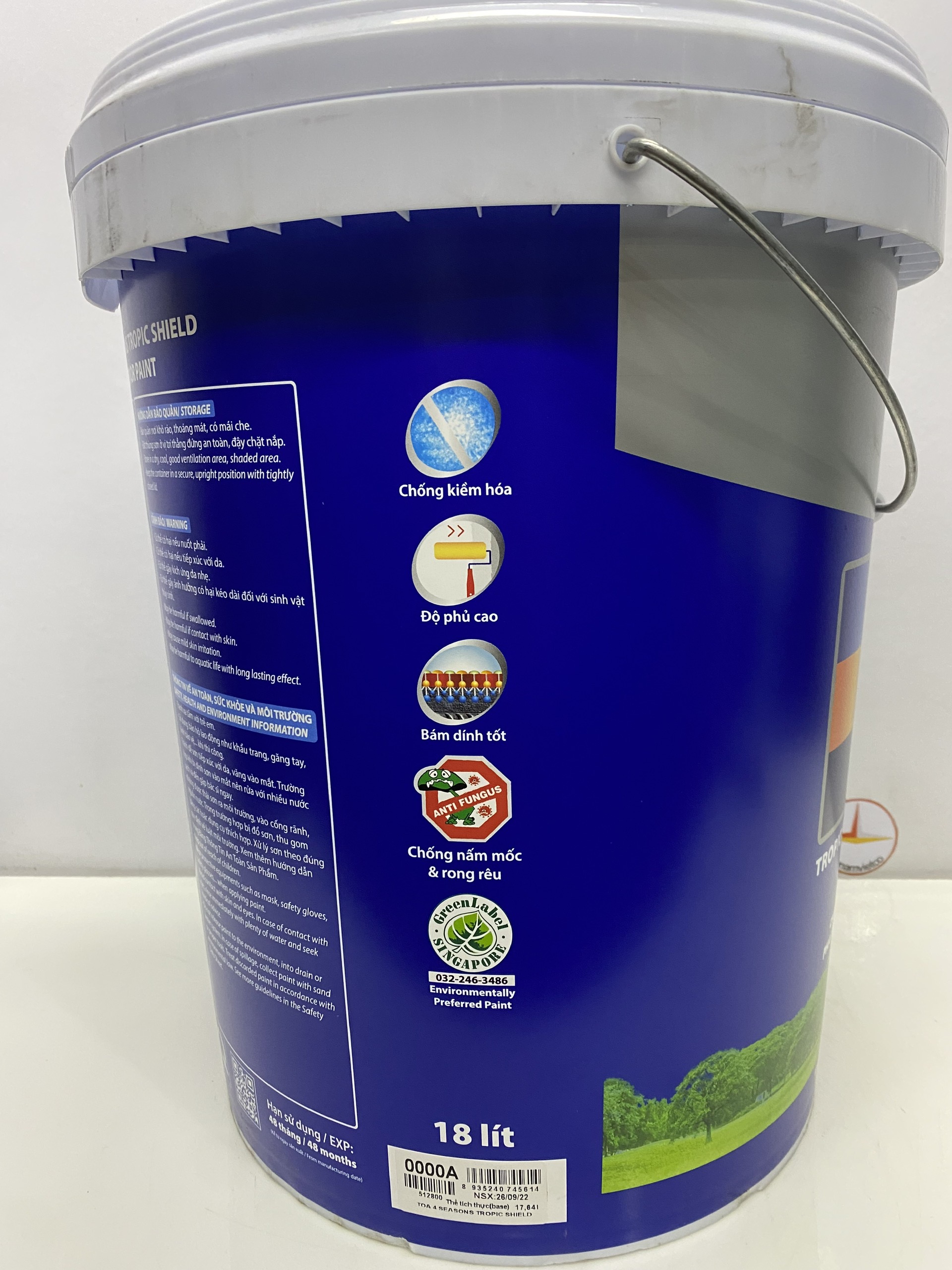 Sơn nước Toa 4 Seasons Tropic shield ngoại thất chống bám bụi màu 7506 _18L(HÀNG PHA MÀU - VUI LÒNG KHÔNG ĐỔI TRẢ HÀNG)Sơn nước ngoại thất TOA 4 Seasons Tropic Shield là sơn nước dành cho ngoài trời...