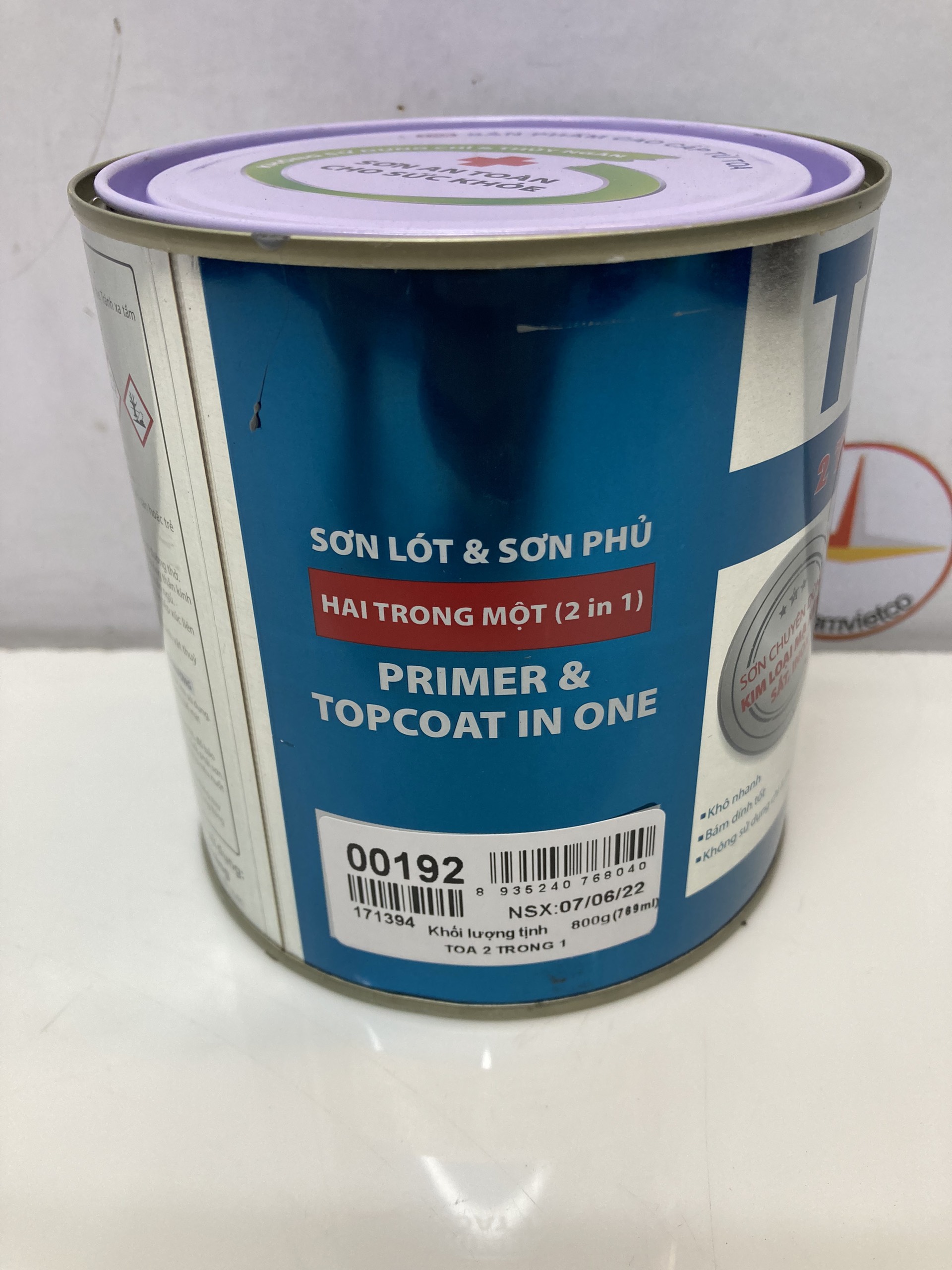 Mua tại TiktokSơn sắt mạ kẽm Toa 2 trong 1 màu xám 192 _ 800Gr Sơn sắt mạ kẽm TOA 2 trong 1 là dòng sơn có cấu tạo chủ yếu từ nhựa Acrylic một thành phần với sự kết hợp của lớp sơn lót và sơn phủ trong cùng một một sản phẩm. Đây là loại sơn an toàn cho sức khỏe với các đặc tính nổi bật: bám dính tuyệt hảo trên nhiều bề mặt, khô nhanh, màng phim cứng chắc, không sử dụng crom, chì .