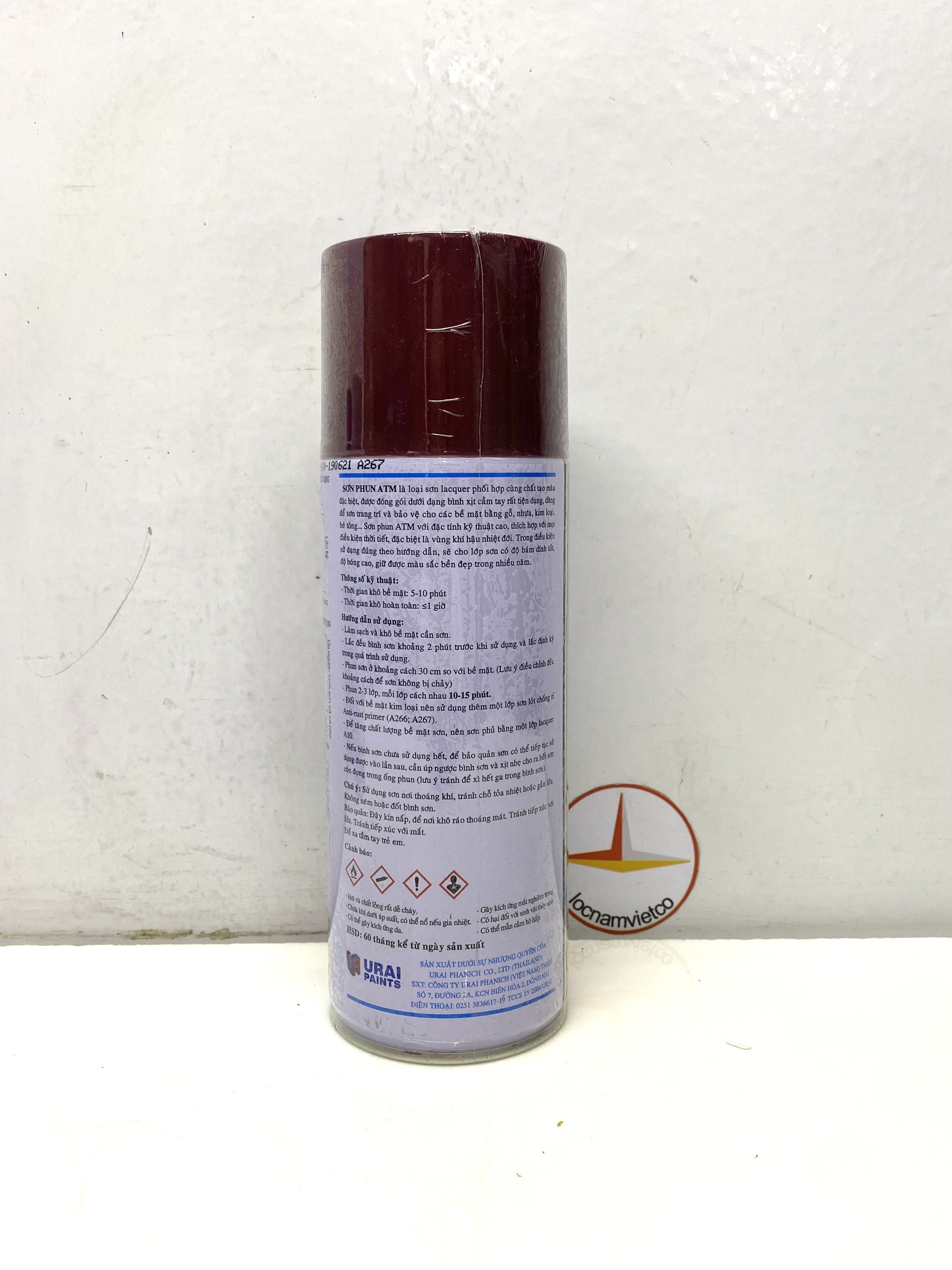 - Nếu bình sơn chưa sử dụng hết, để bảo quản sơn có thể tiếp tục sử dụng vào lần sau, cần úp ngược bình và xịt nhẹ cho ra hết sơn còn đọng trong ống phun (lưu ý tránh để xì hết gas trong bình sơn) Chú ý:Sử dụng sơn nơi thoáng khí, tránh chỗ tỏa nhiệt hoặc gần lửa. Bảo quản sơn nơi có nhiệt độ dưới 40 độ C. Không ném hoặc đốt bình sơn. Bảo quản: Đậy kín nắp, để nơi khô ráo thoáng mát. Để xa tầm tay trẻ em và tránh tiếp xúc với mắt. HSD: 60 tháng kể từ ngày sản xuất. Sản phẩm được phân phối bởi: Công ty TNHH Lộc Nam Việt 1933 QL51, Phước Tân, Biên Hòa, Đồng Nai 0948 79 5588
