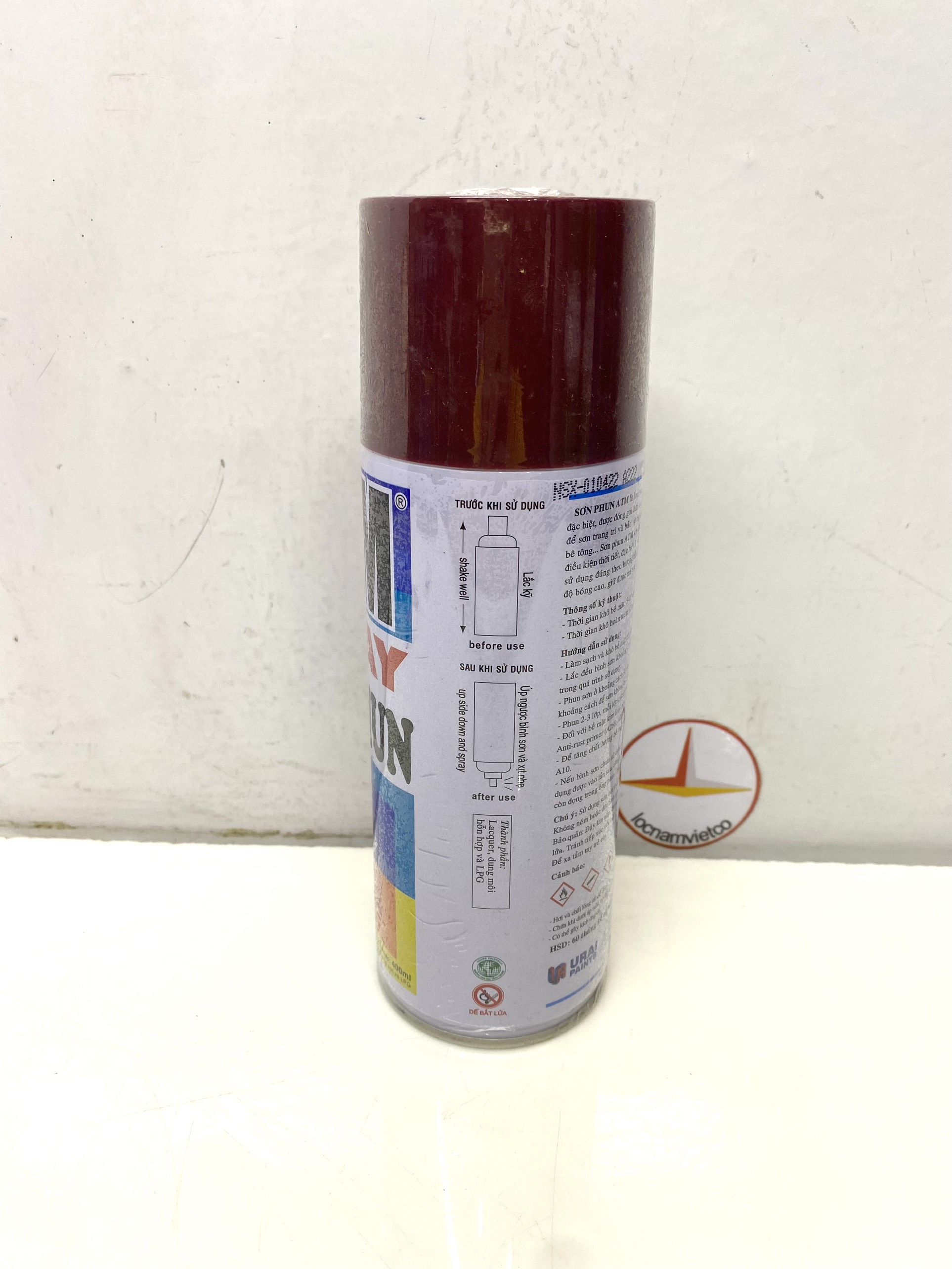 Mua tại TiktokSơn xịt màu đỏ mận ATM A 222 SƠN PHUN “ATM” ACRYLIC: Đặc chế từ hỗn hợp nhựa N/C và ACRYLIC, được đóng gói dưới dạng bình xịt cầm tay rất tiện dụng, dùng sơn để trang trí cho các bề mặt bằng gỗ và kim loại như: đồ gia dụng, bàn, ghế, đồ chơi trẻ em, xe đạp, xe máy