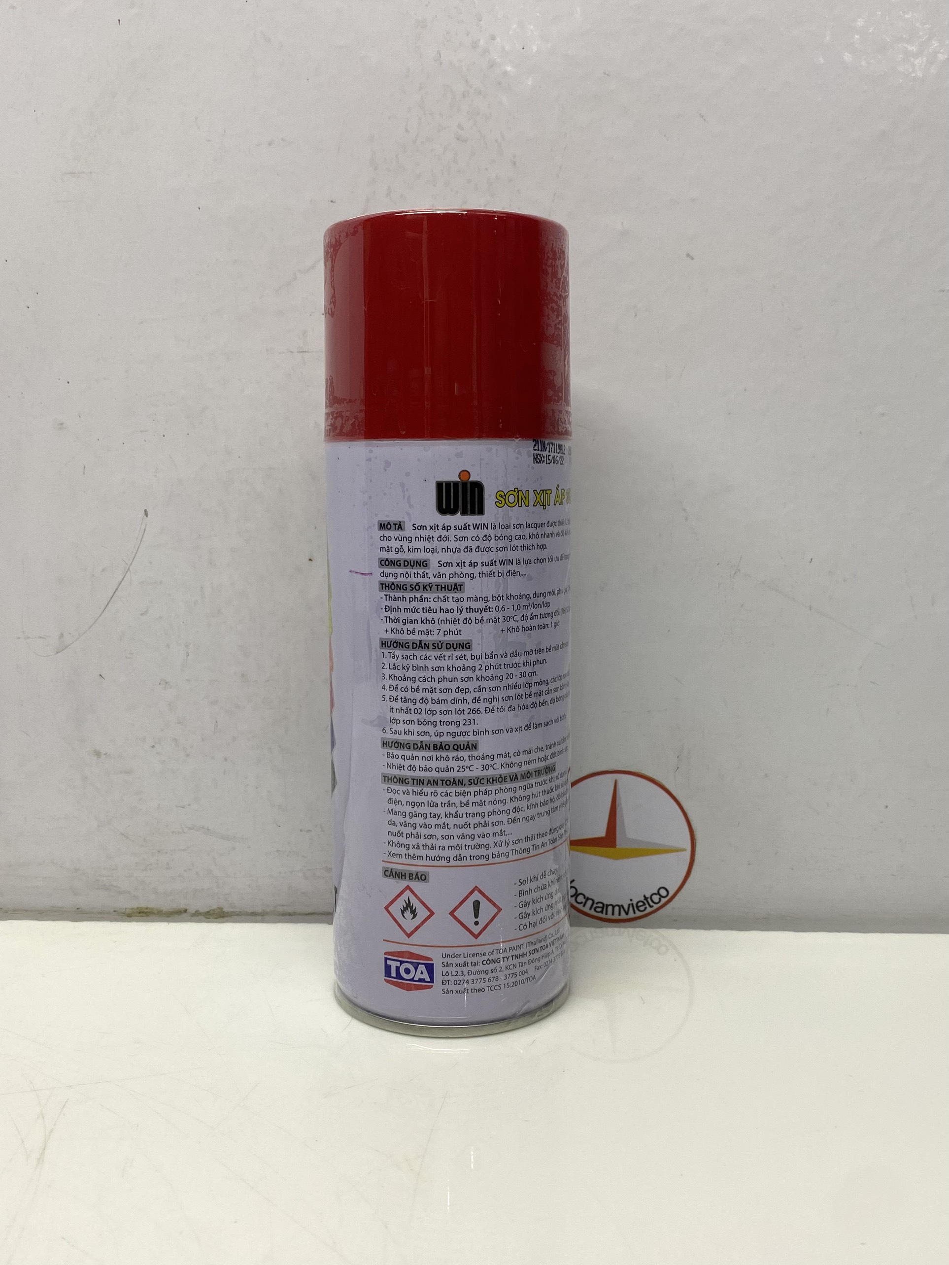 - Sau khi sơn, úp ngược lon sơn và xịt để làm sạch vòi phun. Sản phẩm được phân phối bởi: Công ty TNHH Lộc Nam Việt 1933 QL51, Phước Tân, Biên Hòa, Đồng Nai '0948 79 5588'
