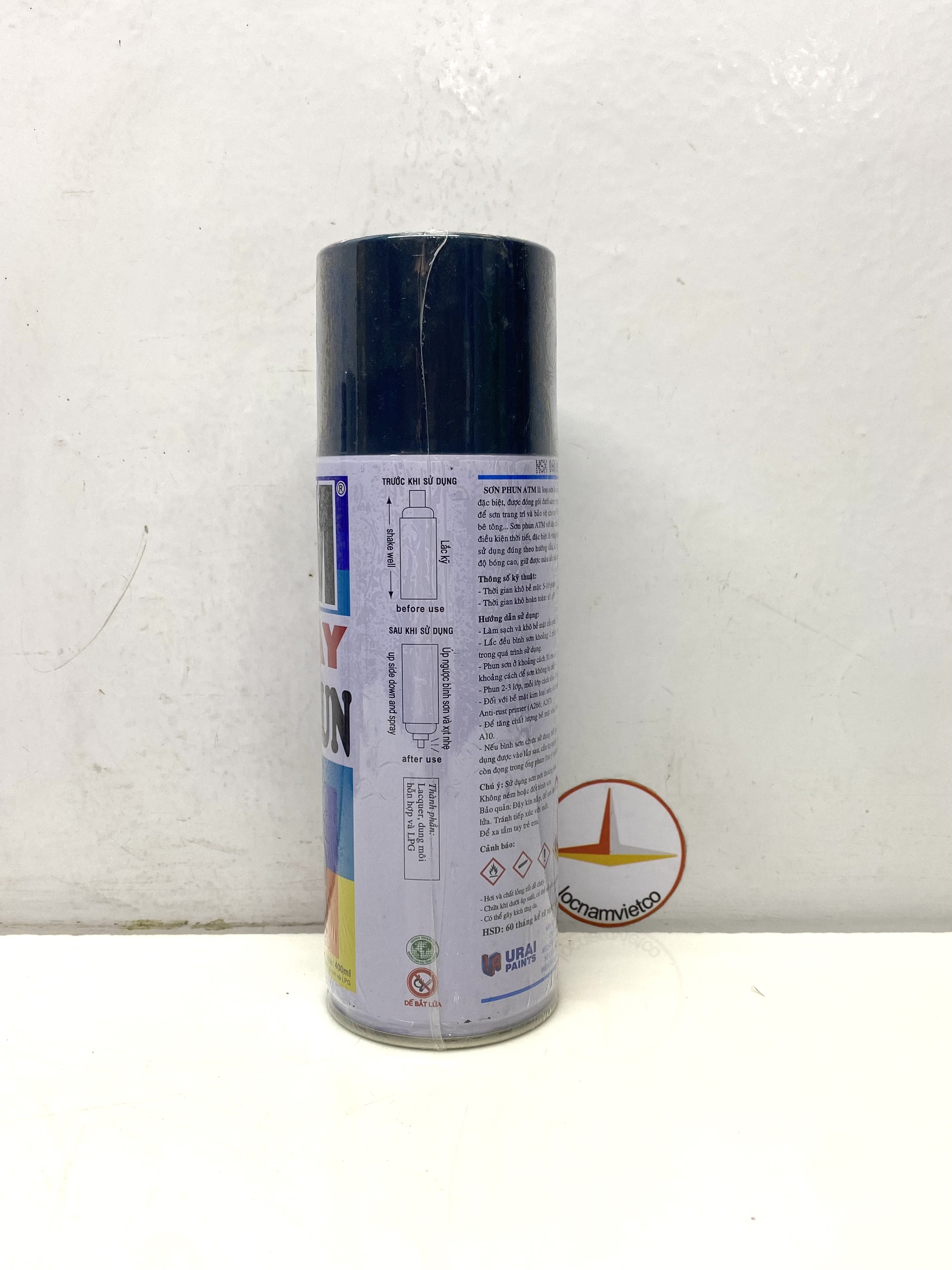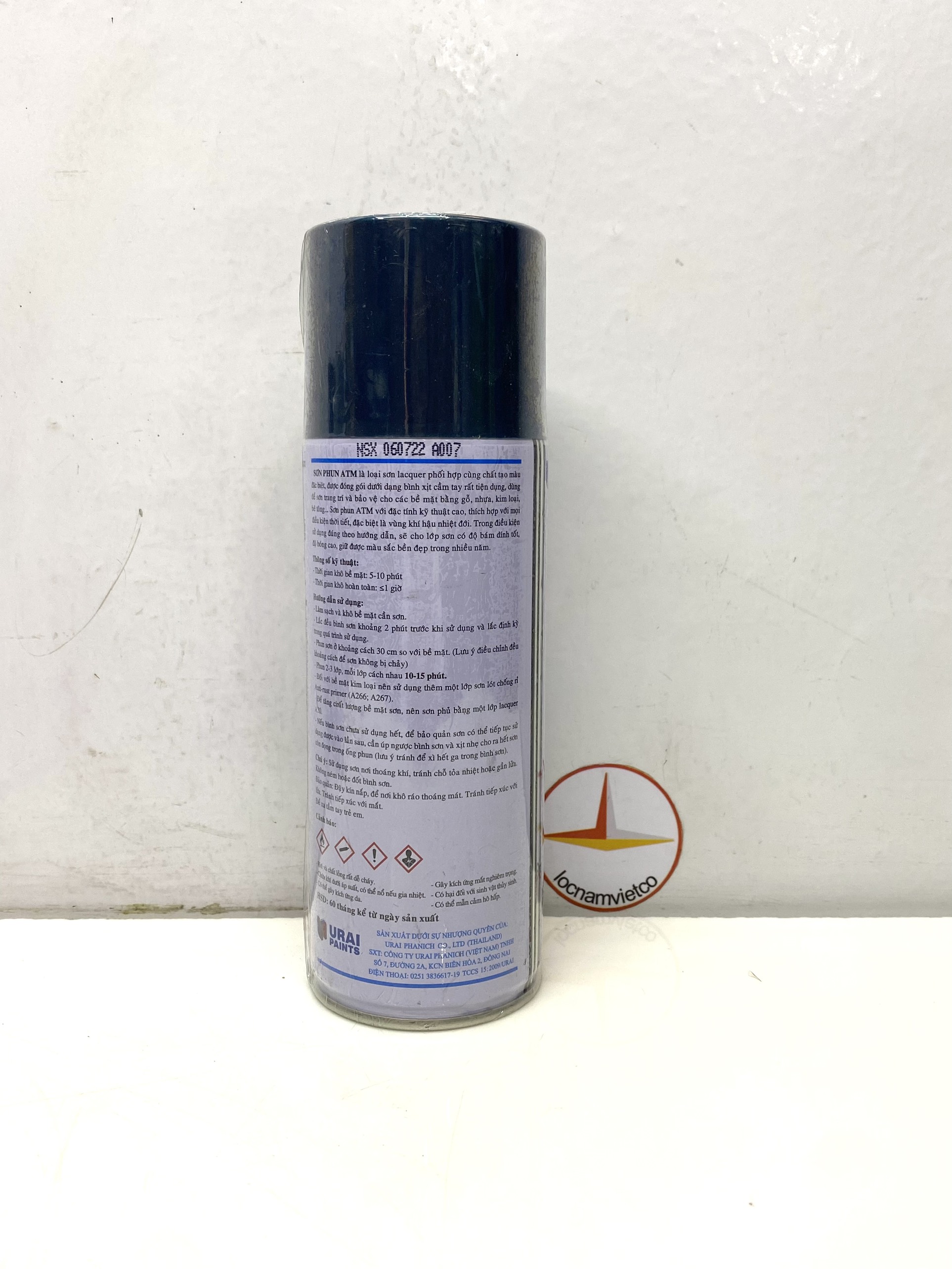 - Nếu bình sơn chưa sử dụng hết, để bảo quản sơn có thể tiếp tục sử dụng vào lần sau, cần úp ngược bình và xịt nhẹ cho ra hết sơn còn đọng trong ống phun (lưu ý tránh để xì hết gas trong bình sơn) Chú ý:Sử dụng sơn nơi thoáng khí, tránh chỗ tỏa nhiệt hoặc gần lửa. Bảo quản sơn nơi có nhiệt độ dưới 40 độ C. Không ném hoặc đốt bình sơn. Bảo quản: Đậy kín nắp, để nơi khô ráo thoáng mát. Để xa tầm tay trẻ em và tránh tiếp xúc với mắt. HSD: 60 tháng kể từ ngày sản xuất. Sản phẩm được phân phối bởi: Công ty TNHH Lộc Nam Việt 1933 QL51, Phước Tân, Biên Hòa, Đồng Nai 0948 79 5588