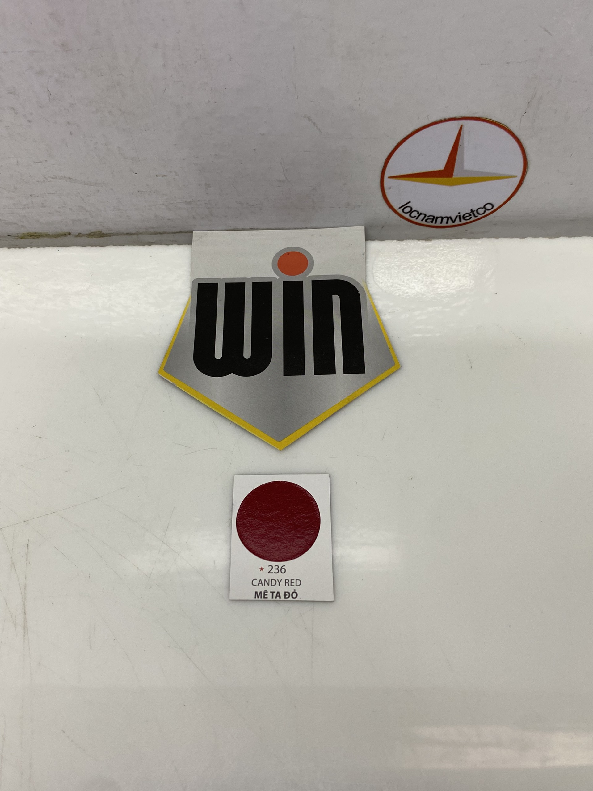 - Khô hoàn toàn:Sau 1 giờ Một số mã màu sơn xịt Win khác: Clear 231(Không màu); màu trắng white 200; màu bạc bright silver; màu đỏ 211 red; màu đen mờ flat black 212; màu đen black 210; màu xanh 224 sky blue; màu xanh 213; màu xanh river blue 242; màu xanh ford tractor blue 238; màu xanh đen dark blue 216; màu tím 240 violet; turquoise 223; màu xanh apple green 217; màu xanh green 214; màu black board green 225; machine green 281; olive green 268; màu kem 219 cream; màu vàng yellow 218; màu vàng medium yellow 241 màu cam 226 orange; màu hồng pink 229; màu xanh đen dark green 230; màu trắng xám 232; màu xám kusota 958; màu xám grey 215; màu xám sáng light grey 221; màu xám medium grey 220; màu nâu cocoa brown 265; màu đỏ deep red 239; màu maroon new 222; màu grey A70 Sơn xe mô tô, xe máy, xe đạp WIN: Màu mêta đỏ candy red 236; màu meta xanh wave green A007; màu meta xanh dương candy blue 235; Màu nho dream H012; Sơn nhũ bạc meta hat nhỏ undercoat silver A100; sơn nhũ bạc mê ta hạt lớn candy tone 404 màu candy green 234; màu mêta đồng gold 228. Sơn xịt màu đặc biệt: Màu xi mạ vàng K83 Pearl gold Sơn xịt chịu nhiệt(600 độ C/ 1200 độ F): Sơn chịu nhiệt đen mờ H51, sơn chịu nhiệt bạc sáng H52 Sơn lót chống rỉ: Sơn lót màu xám primer surfacer grey 266; sơn lót chống rỉ màu đỏ chu Anti-rust primer 267. HƯỚNG DẪN THI CÔNG: