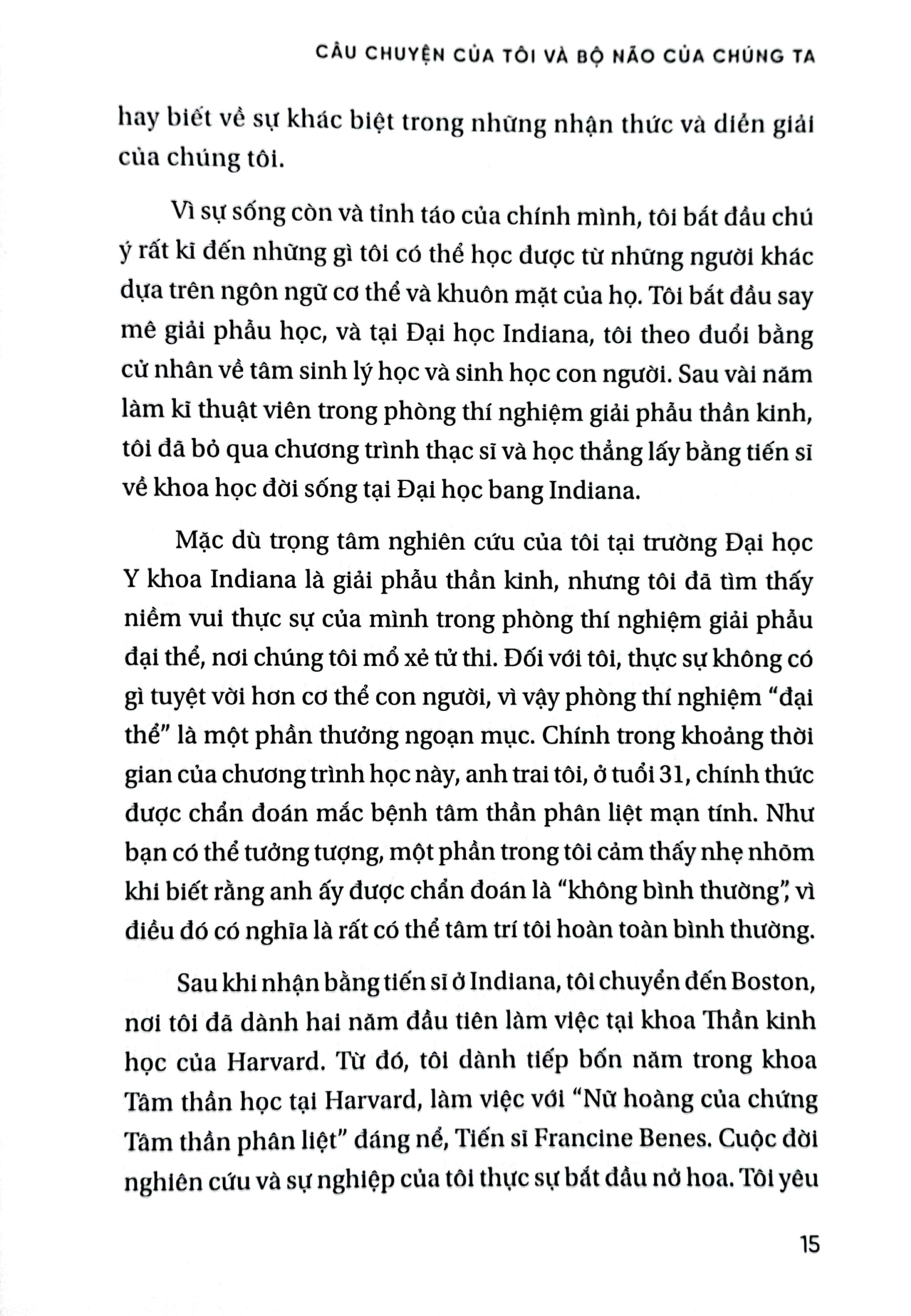 Thuộc thể loại hồi kí và khoa học thần kinh, cuốn sách này phù hợp với đối tượng độc giả là những nhà khoa học về thần kinh và não bộ, những sinh viên theo học chuyên ngành liên quan và những người mong muốn tìm hiểu về não bộ cũng như muốn kết nối với chính m.ình, với người khác và muốn tìm được sự bình yên nội tại.