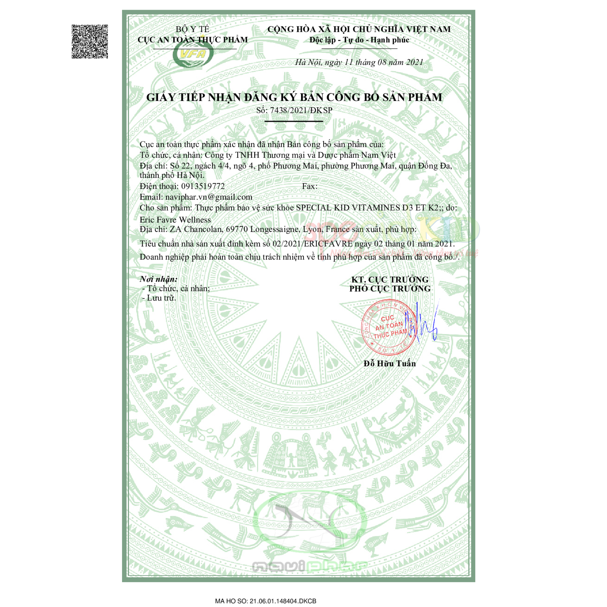 Nhập khẩu & phân phối : Công ty TNHH TM và DP Nam Việt