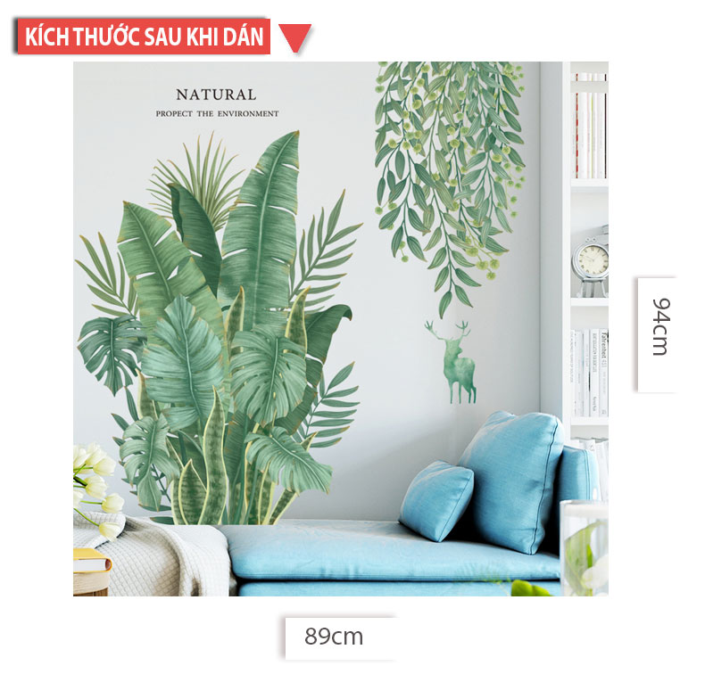 Video Giải thích quy cách đóng gói và cách dán sản phẩm [ Size Lớn ] Decal dán tường kết hợp Lá xanh - Bụi Tre và Sen AM9104+0779C+XY1097AB Kích thước sản phẩm khi đóng