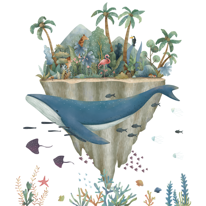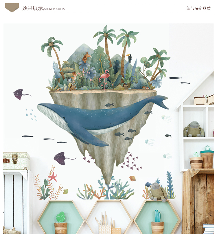 ✨Sticker Giấy Dán Tường Decal Dán tường Tranh Dán Tường Trang Trí Tường Mẫu Cá Voi Xanh Và Bán Đảo Sở Thú ZH-1018