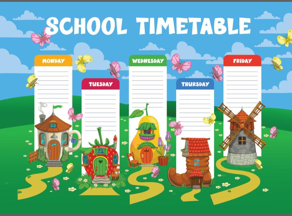 Thời khóa biểu cho các bé có keo dán lên tường hoặc bàn, dán vào cặ để lên lịch học.