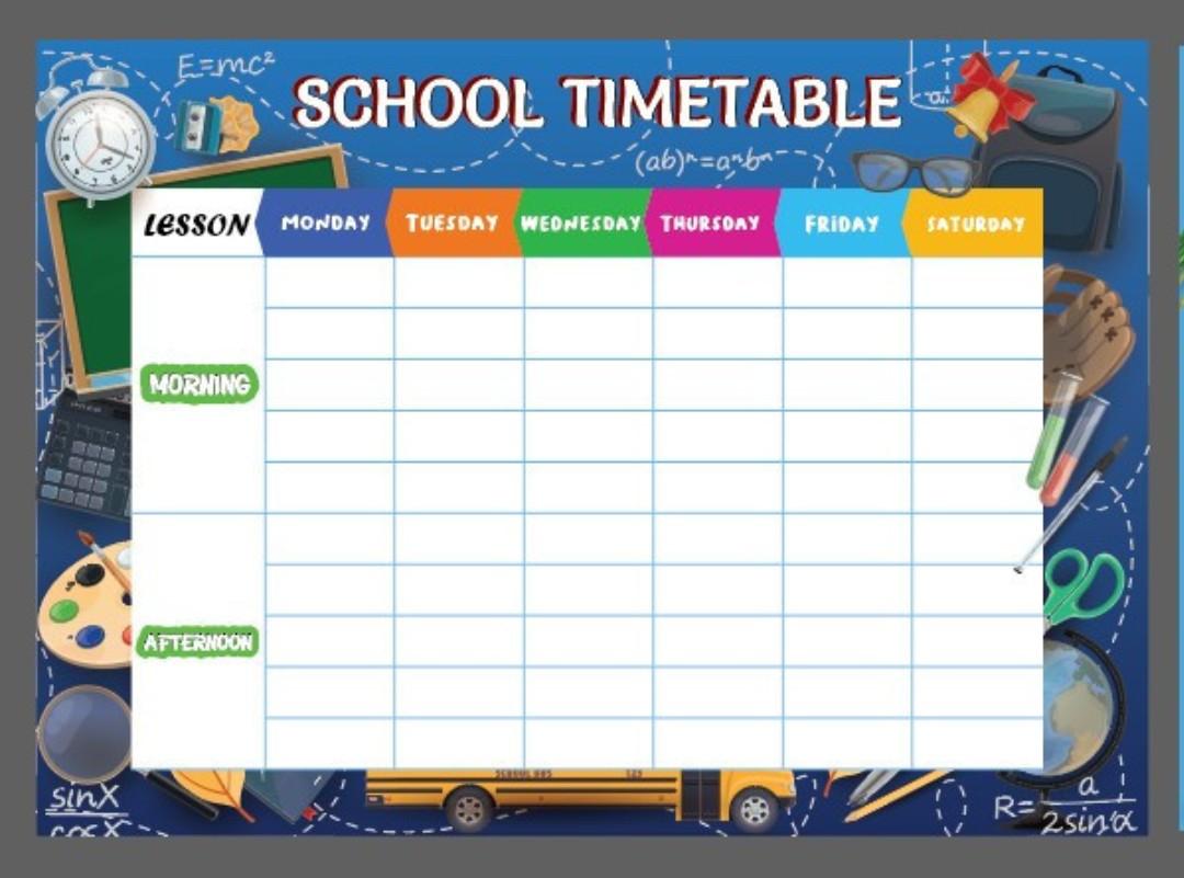 Thời khóa biểu cho các bé có keo dán lên tường hoặc bàn, dán vào cặ để lên lịch học.