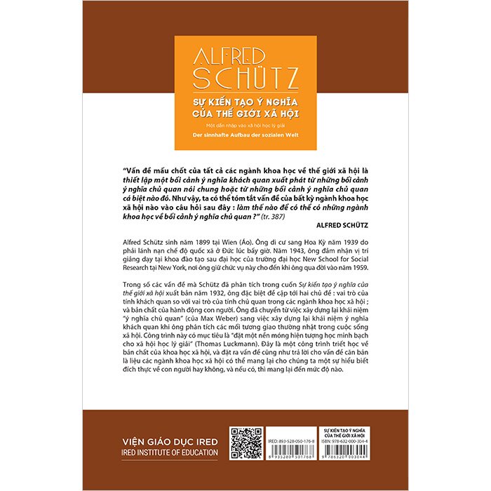 Tác phẩm: “Sự kiến tạo ý nghĩa của thế giới xã hội | Der sinnhafte Aufbau der sozialen Welt” Tác giả: Alfred Schütz Người dịch: Trần Hữu Quang IRED BOOKS | Nhà xuất bản Dân