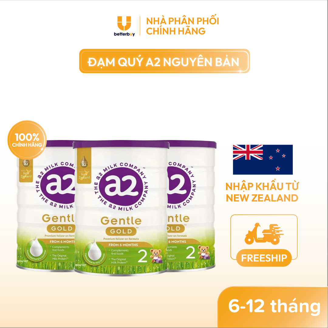 a2 Gentle Gold Premium - Sữa công thức nguyên kem nhập khẩu trực tiếp từ New Zealand, 100% đạm A2 chuyên hỗ trợ tiêu hóa, hấp thu và tăng cân hiệu quả cho trẻ từ 6-12 tháng.