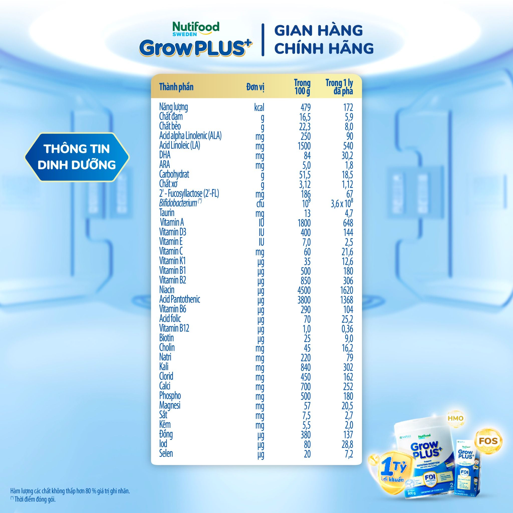 Sản phẩm này không phải là thuốc, không có tác dụng thay thế thuốc chữa bệnh Nutifood Sweden GrowPLUS+ Sữa non là thương hiệu của Nutifood Thụy Điển với công thức được phát triển bởi