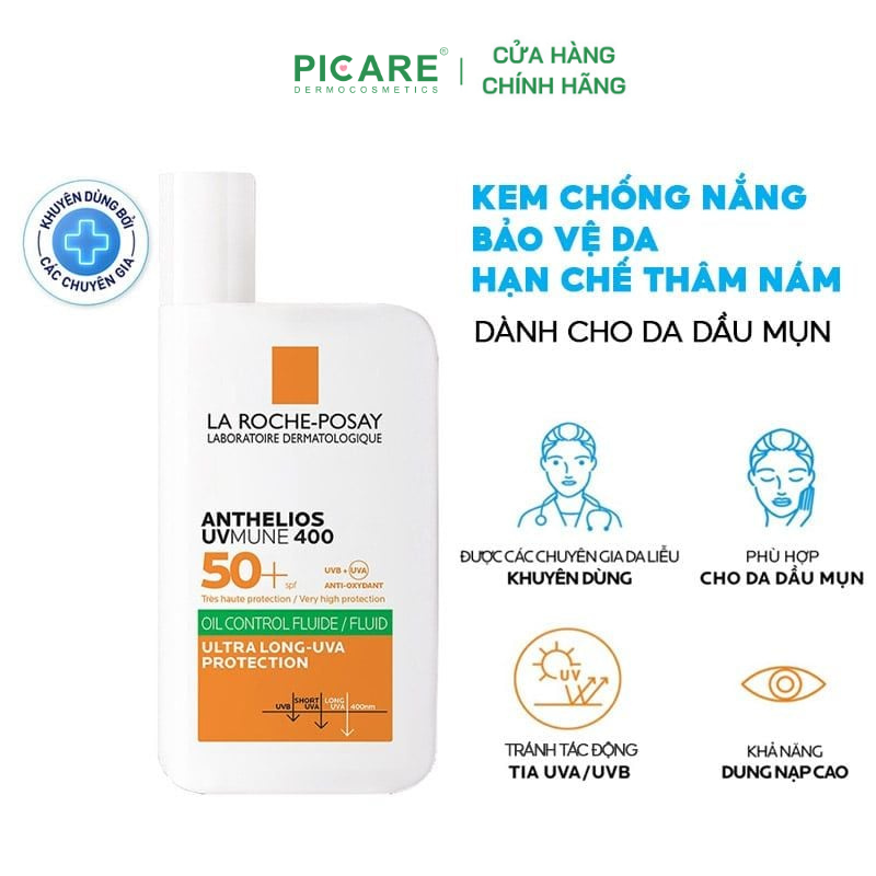 Sữa Chống Nắng La Roche-Posay Anthelios UVMune 400 Fluide Invisible Fluid SPF50+ là phiên bản cải tiến của Anthelios Invisible Fluid – dòng sản phẩm chống nắng rất được yêu thích và được đánh giá cao từ thương hiệu dược mỹ phẩm La Roche-Posay. Sản phẩm cung cấp khả năng bảo vệ da vượt trội khỏi tia UVB & UVA dài – ngay cả các tia ở bước sóng 380 – 400 NM – thủ phạm tiềm ẩn hình thành các gốc thâm nám nằm sâu dưới da.