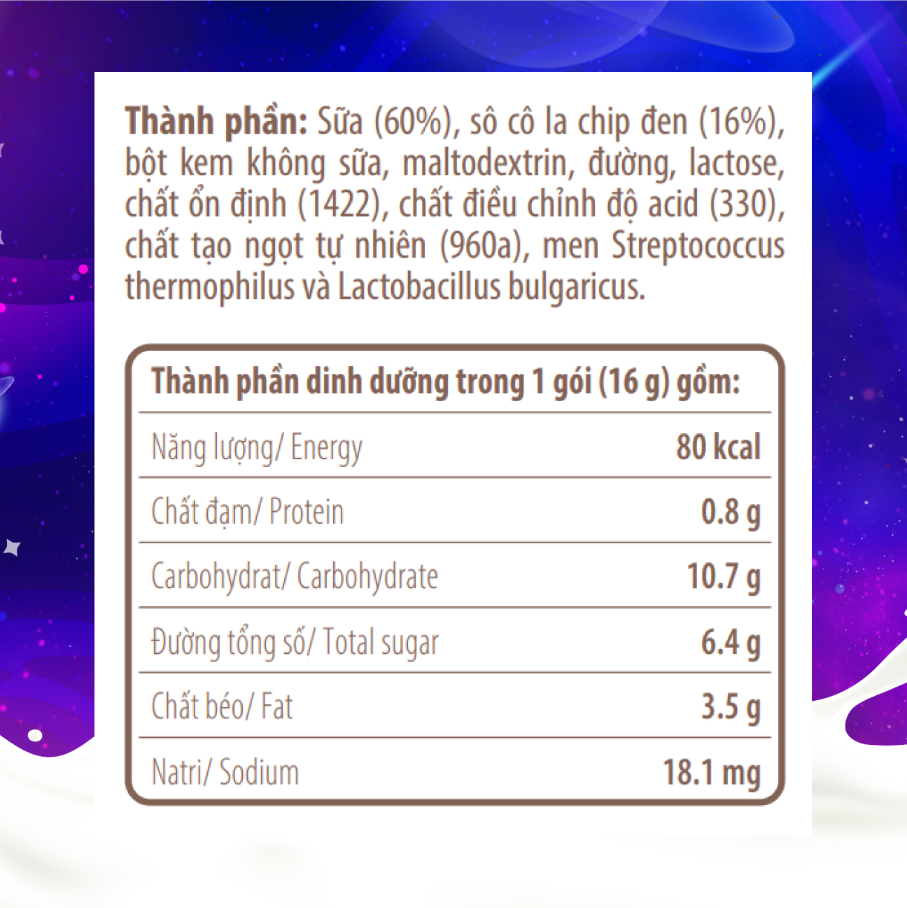 Được làm từ sữa tươi sạch, nguyên chất của trang trại bò sữa tại Việt Nam và lên men tự nhiên theo công nghệ đạt chuẩn Châu Âu với lợi khuẩn Bulgaricus & Thermophilus, giúp tăng cường đề kháng và tiêu hóa.