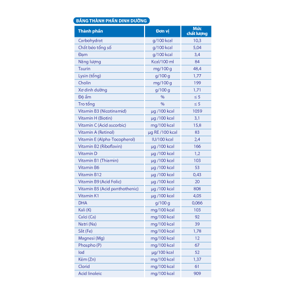 Các dưỡng chất thiết yếu như DHA, Omega 3, Omega 6 kết hợp với taurin, cholin, lutein, khoáng chất sắt, kẽm, axít giúp phát triển trí não của bé, tăng cường khả năng nhận biết và bảo vệ não khỏe mạnh.