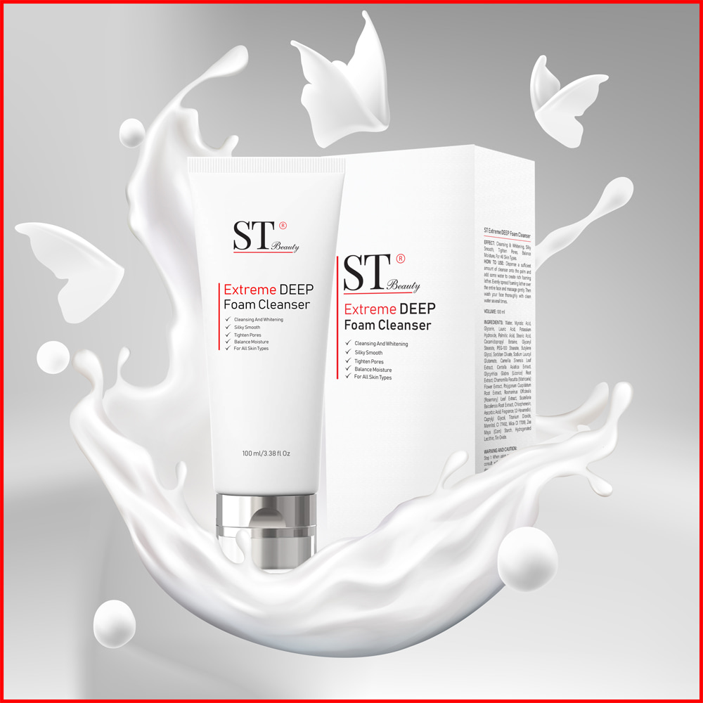 Tiêu đề: Sữa Rửa Mặt ST Beauty: Làm Sạch Sâu - Thông Thoáng Lỗ Chân Lông – Trắng Đều Màu & Cân Bằng Độ Ẩm cho Da - ST Beauty Extreme DEEP Foam Cleanse –