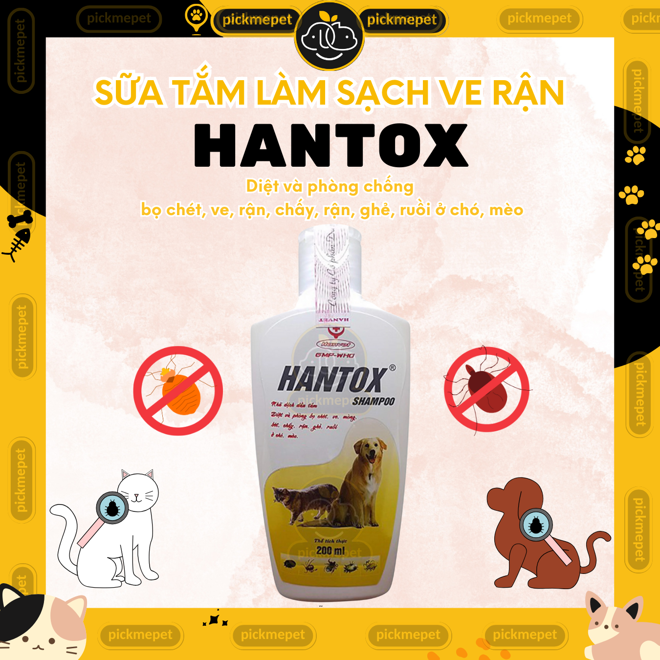 Sữa tắm HANTOX 200ml - Sữa tắm Diệt Ve Rận, Bọ Chét cho Chó Mèo Lớn, Chó Mèo Nhỏ Dùng được cho Chó & Mèo Màu VÀNG: Dành cho chó mèo trưởng thành, mùi hơi