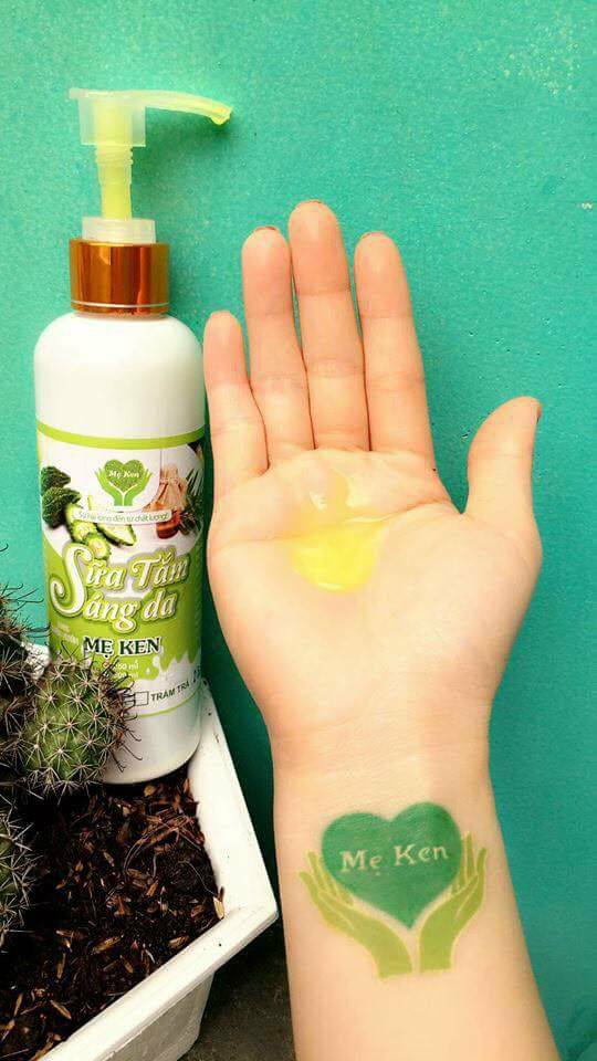 SỮA TẮM SÁNG DA MẸ KEN (250ml) Thành phần: sữa bò tươi nguyên chất 100%, bột nhân sâm, tinh chất khổ qua, tràm trà, trà xanh, tinh bột nghệ, sáp đậu nành, bột cây đa niên,