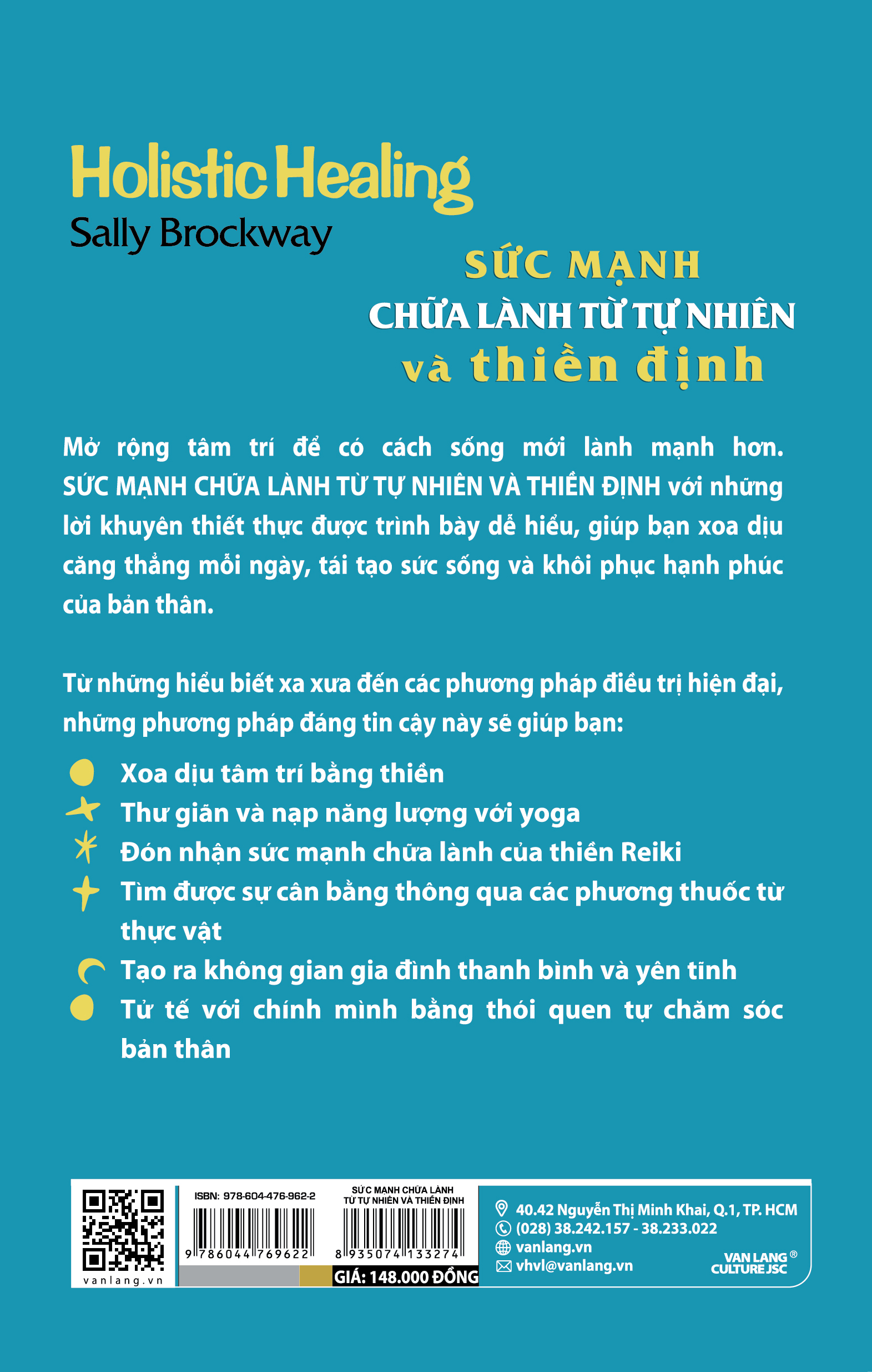 Từ những hiểu biết xa xưa đến các phương pháp điề trị hiện đại, những phương pháp đáng tin cậy này sẽ giúp bạn: Xoa dịu tâm trí bằng thiền Thư giãn và nạp năng lượng với yoga Đón nhận sức mạnh chữa lành của thiền Reiki Tìm được sự cân bằng thông qua các phương thuốc từ thực vật Tạo ra không gian gia đình thanh bình và yên tĩnh Tử tế với chính mình bằng thói quen tự chăm sóc bản thân