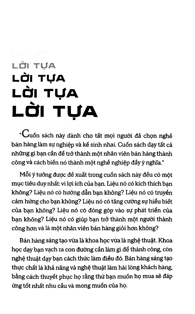 Cuốn sách này sẽ thay đổi suy nghĩ của bạn về cách thức bán hàng từ trước tới nay, đưa bạn đến một ý nghĩa mới của việc bán hàng, được tác giả gọi là bán