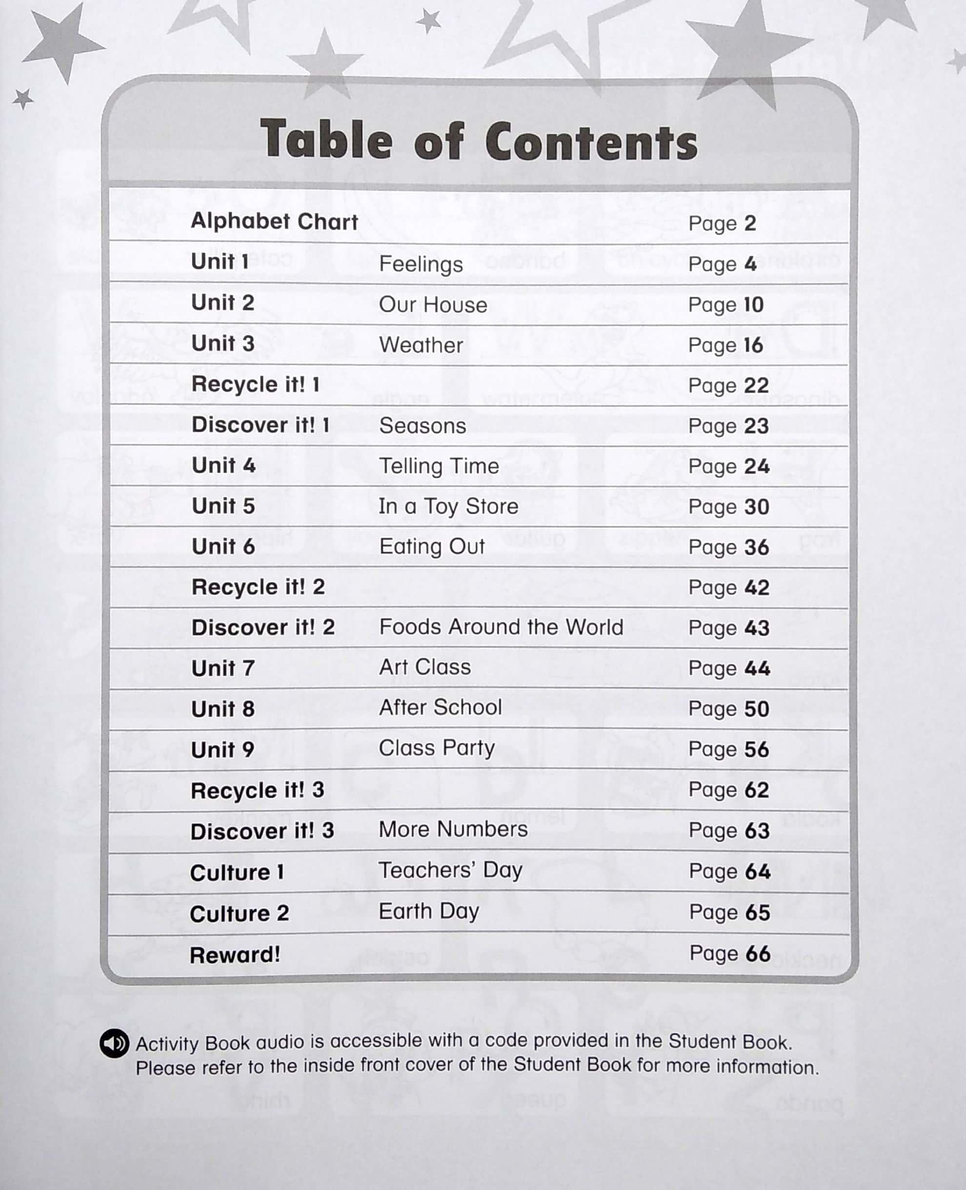 The Activity Book offers further practice of language items introduced in the Student Book. Audio for the activity book is accessed using the access code from the Student Book.