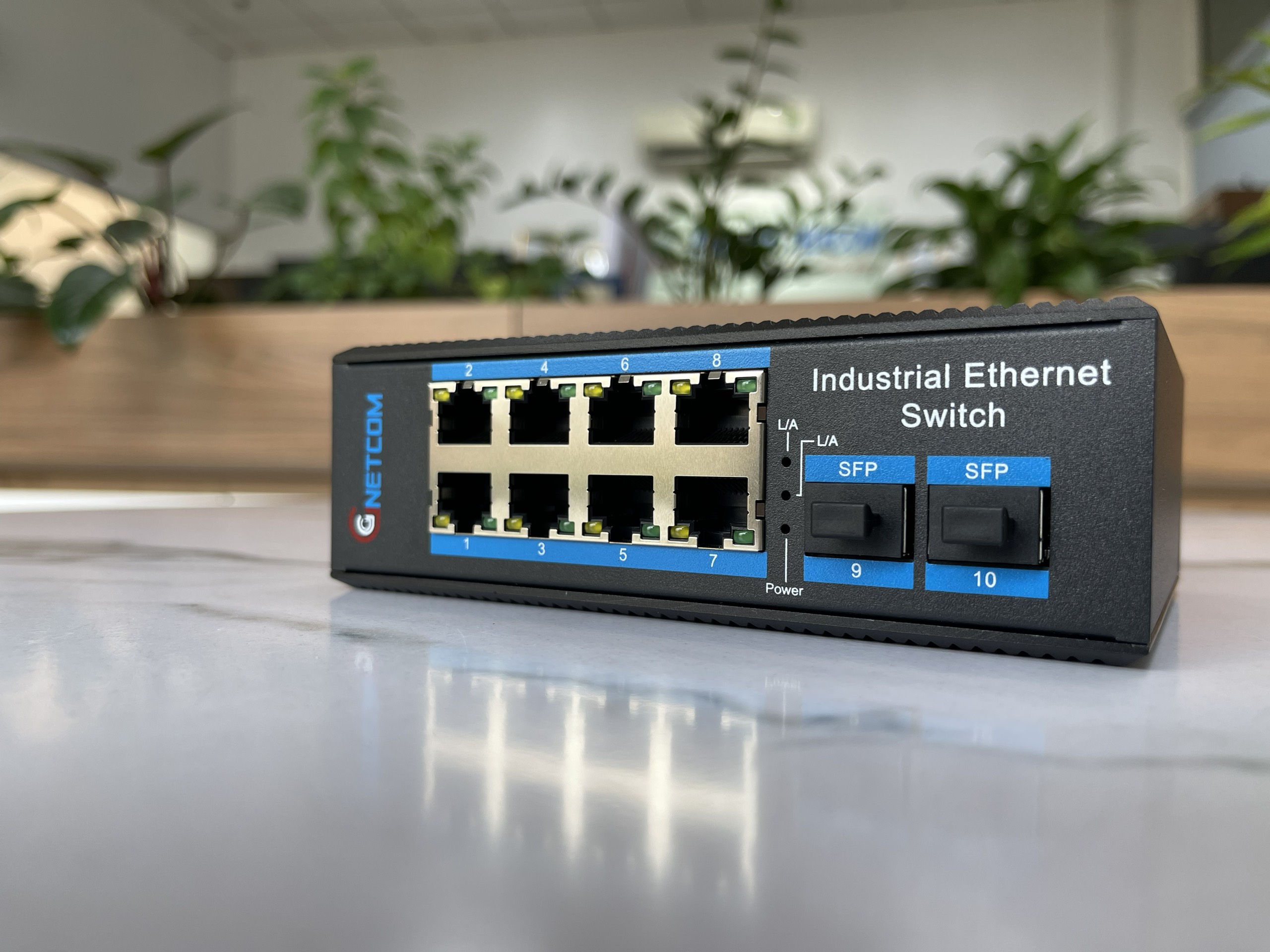 - Switch công nghiệp GNETCOM có 8 cổng POE 10/100/1000M với 2 cổng Uplink SFP. Công suất đầu ra trên mỗi cổng PoE tối đa: 30W