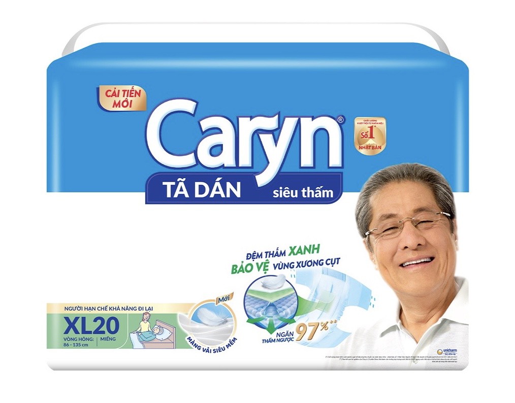 Tã dán Siêu thấm Caryn với cải tiến “Rãnh thấm siêu tốc’ duy nhất trên thị trường giúp tăng cường độ thấm hút và giữ bề mặt tã luôn khô thoáng, là lựa chọn tốt nhất cho người dùng hạn chế khả năng đi lại .