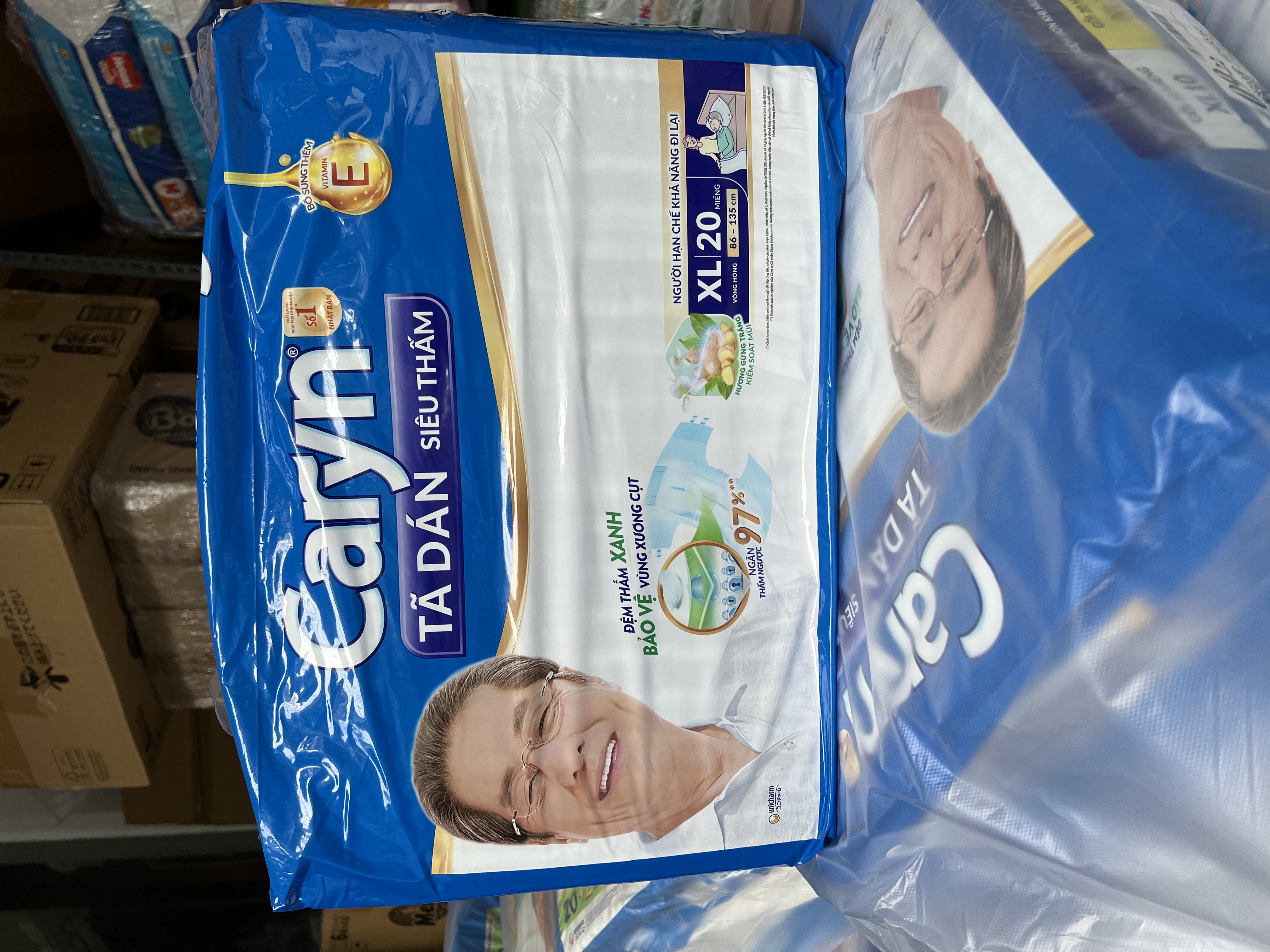 Tã/ Bỉm dán người lớn Caryn Siêu Thấm size XL 20 miếng Tã dán Siêu thấm Caryn với cải tiến “Rãnh thấm siêu tốc’ duy nhất trên thị trường giúp tăng cường độ thấm hút