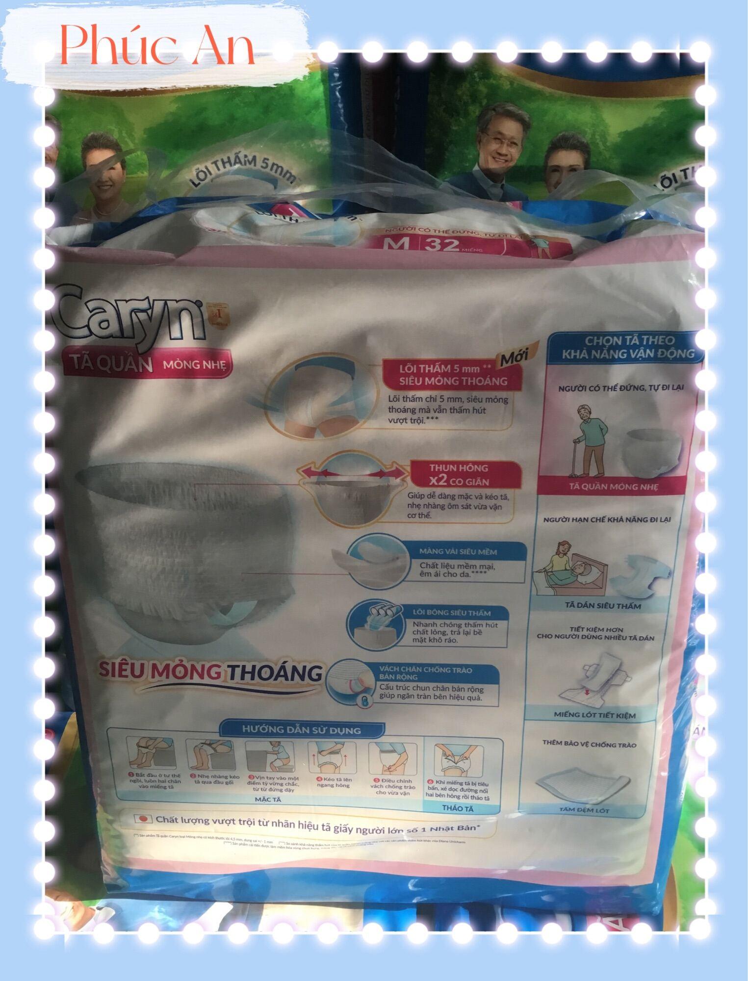 Tã quần người lớn Caryn bỉm quần gói lớn size M16 M32 XL12 Mỏng Nhẹ Chống Tràn CÔNG DỤNG -Thiết kế lõi siêu thấm hút giúp chống tràn hiệu quả và thấm hút hết chất