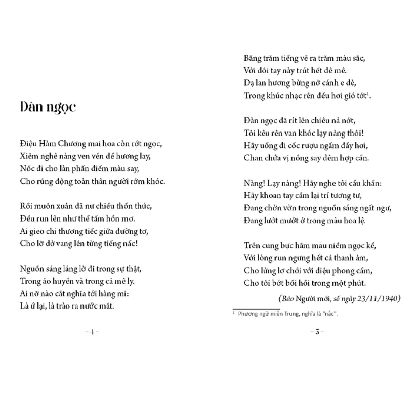 “Thơ Hàn Mặc Tử đi từ trong sáng đến đau thương, bay lên thượng tầng đớn đau chết chóc, rồi trở lại những tinh khiết ban đầu như chưa bao giờ bợn gợn những vật vã kinh hoàng trần thế. Thơ đi cùng Hàn từ thơ ấu đến dậy thì, thành niên với những say mê đắm đuối, rồi thơ mắc bạo bệnh về cõi chết cùng Hàn. Nhưng ở những giây phút khắc nghiệt nhất, hoang loạn nhất, vẫn có hai Hàn, hai thơ: một Hàn của mộng đẹp khi cơn đau lắng xuống và một Hàn của mộng dữ khi cơn đau dấy lên cực điểm