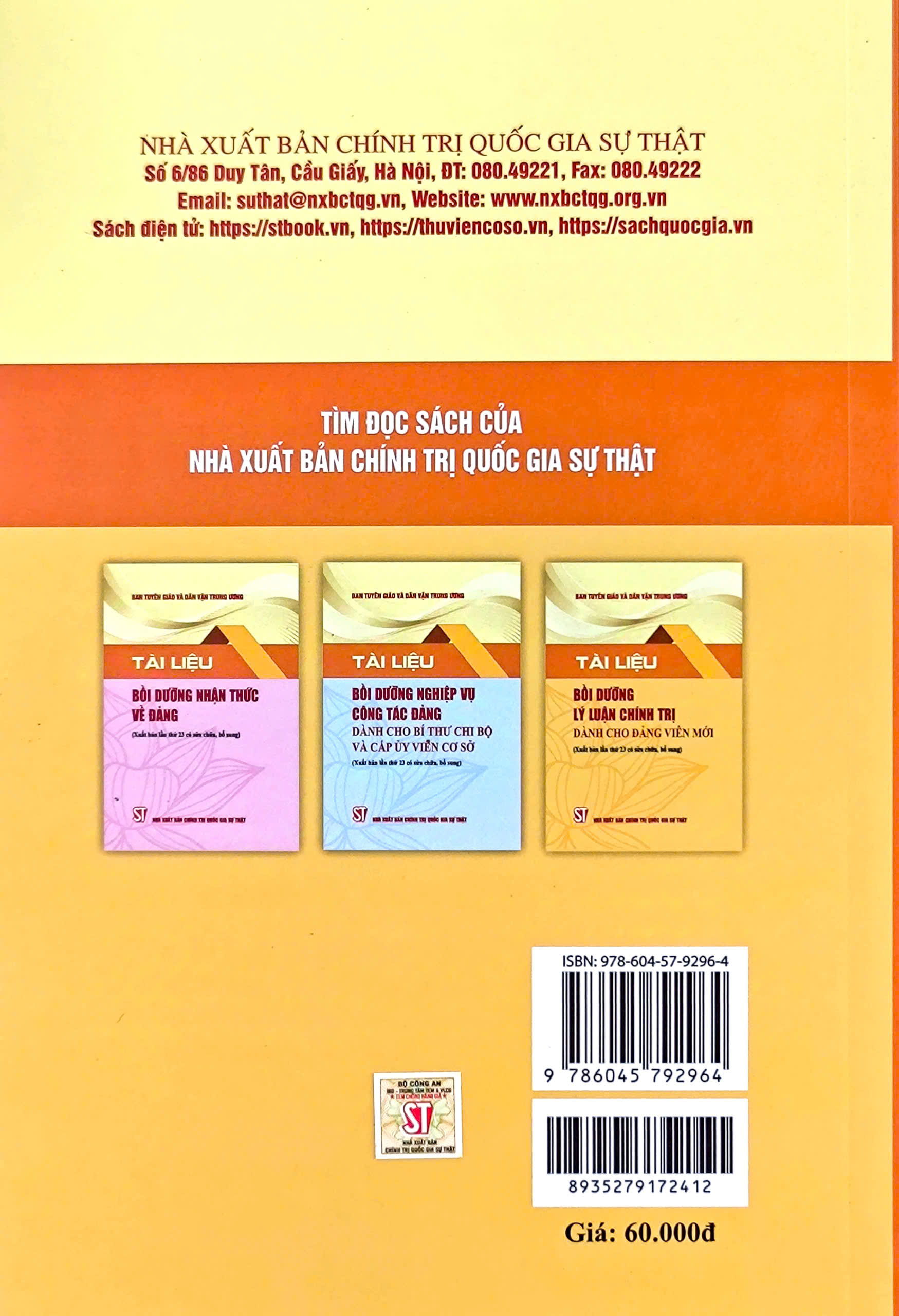 Thực hiện quy định về chế độ học tập lý luận chính trị T trong Đảng những năm qua, Ban Tuyên giáo Trung ương (nay là Ban Tuyên giáo và Dân vận Trung ương) đã biên soạn Tài liệu bồi dưỡng lý luận chính trị dành cho đảng viên mới. Để tiếp tục đáp ứng nhu cầu về bồi dưỡng lý luận chính trị cho đảng viên mới theo quy định, Ban Tuyên giáo và Dân vận Trung ương đã bổ sung, cập nhật, chỉnh sửa nội dung tài liệu cho phù hợp với các quan điểm, văn bản chỉ đạo của Đảng và Nhà nước.