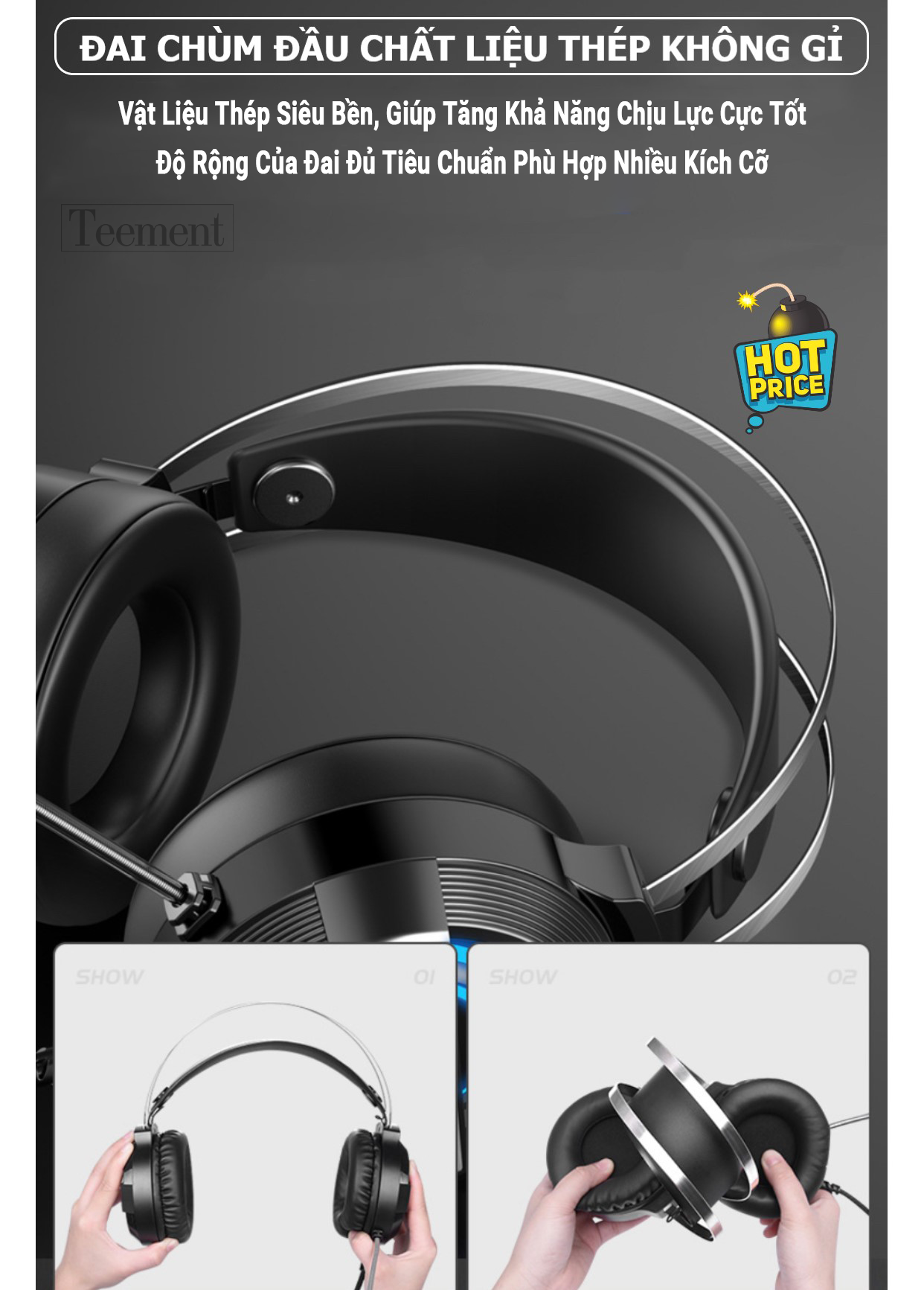 Tai nghe chuyên game có Micro, màu gold xám, ốp tai hình oval chống mỏi. có đèn LED Với thiết kế bản đồ Việt Nam cực đẹp, gọng cực chắc chắn, cùng với chụp tai