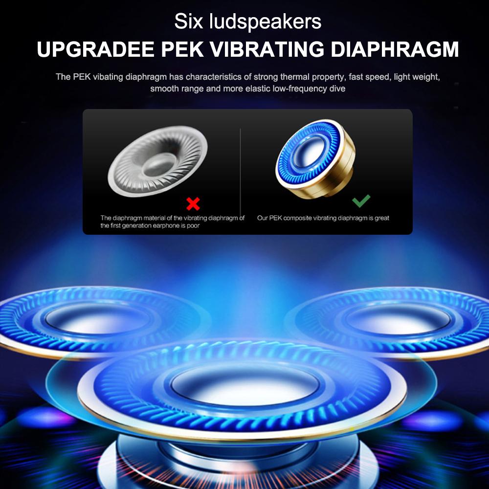Features: *The full vibration of the dynamic sounding unit brings violent resolution and sound field. *Multilayer graphene diaphragm delivers powerful high and low bass ductility and natural tone reduction for reduced distortion. *Built-in Microphone enables