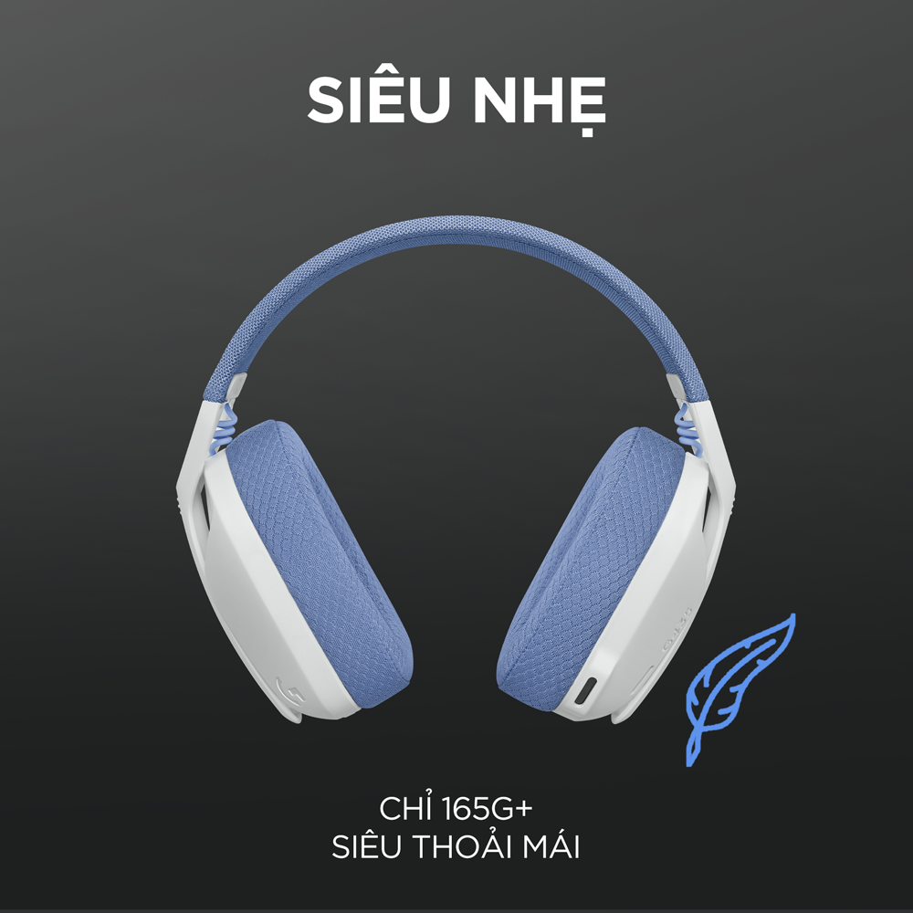 Tai nghe không dây gaming Logitech G435 Bluetooth và Lightspeed, trắng xanh, mic ảo tích hợp