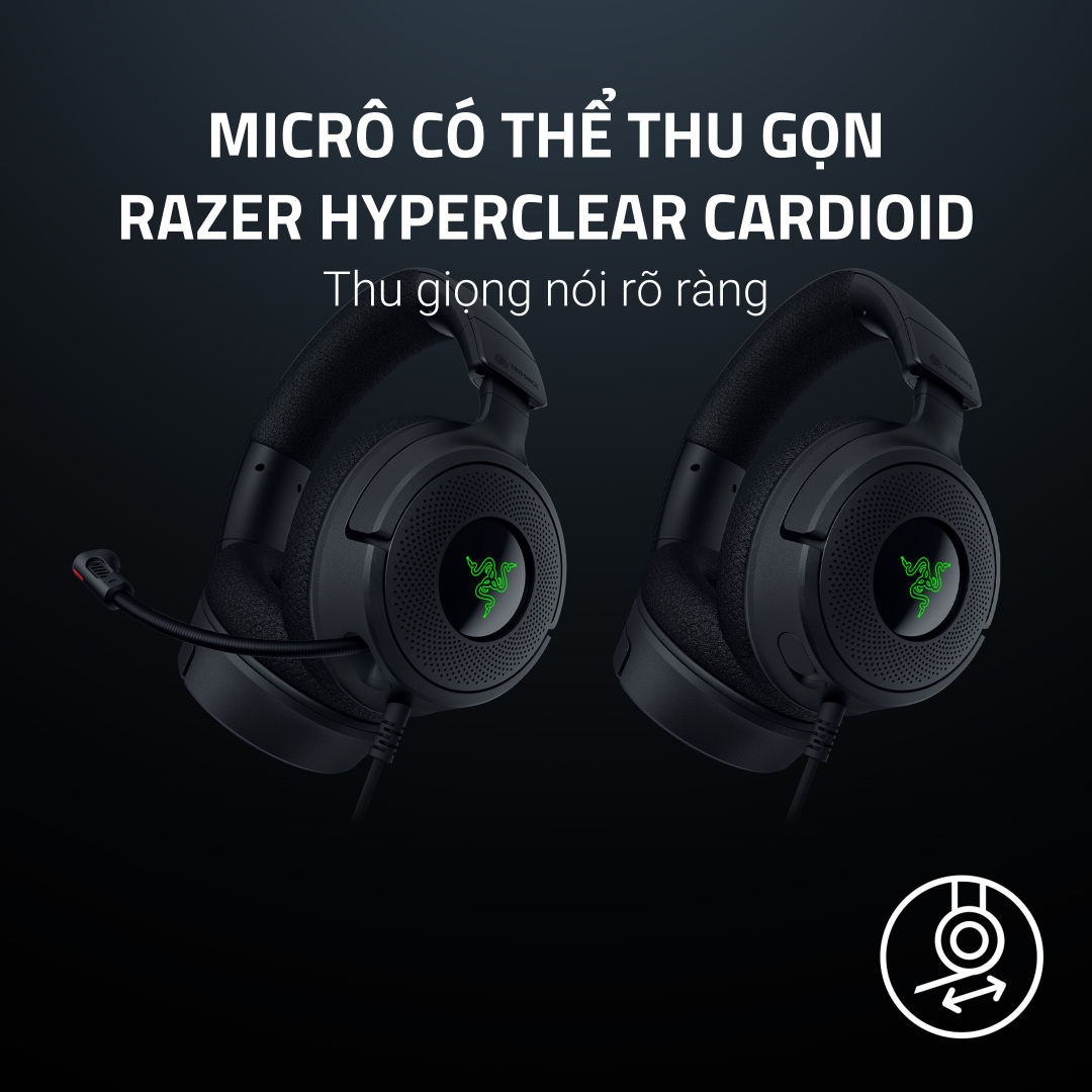 RAZER KRAKEN V4 X ÂM THANH CHÂN THỰC, SỐNG ĐỘNG TỪNG PHA Sống trong game, đắm chìm từng khoảnh khắc trong dải âm thanh sống động với Razer Kraken V4