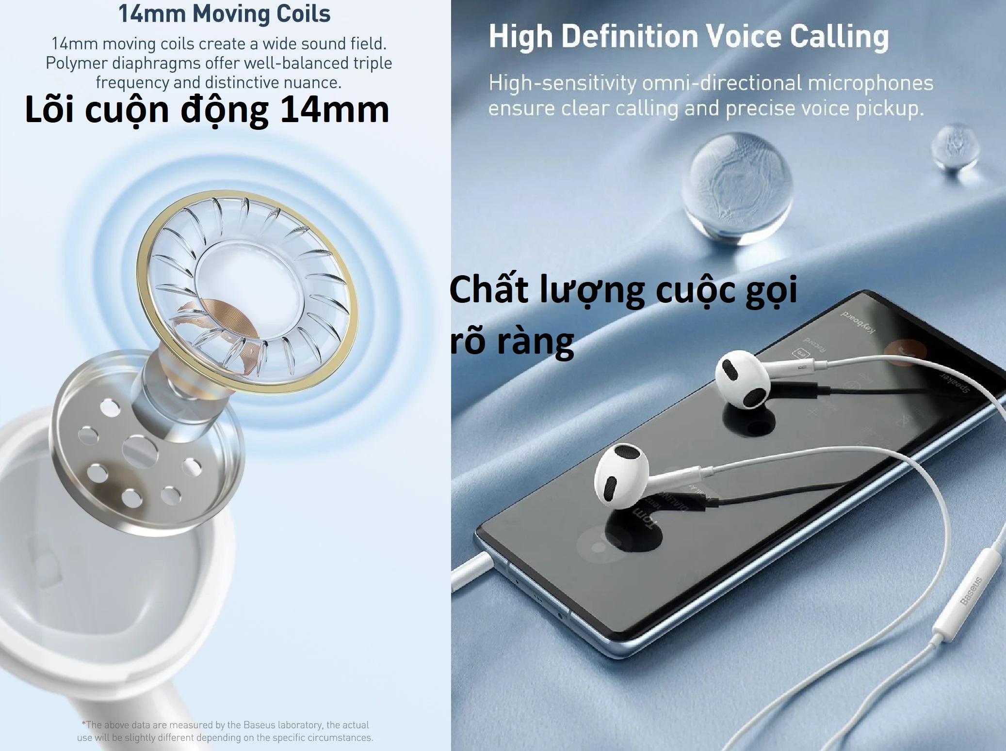 Sản phẩm tai nghe có dây Baseus Encok H06 - Hỗ trợ hiệu ứng âm thanh vòm 8D với 8 lõi âm thanh nổi - Bộ dây 14.2mm cho âm thanh tự nhiền với những