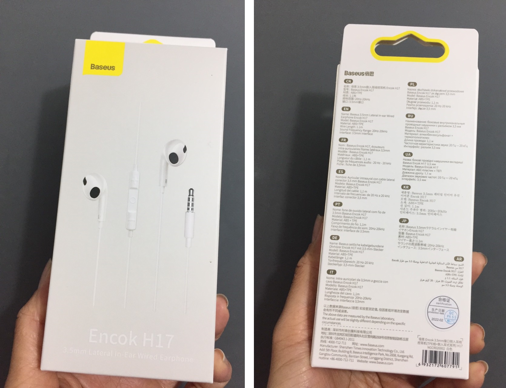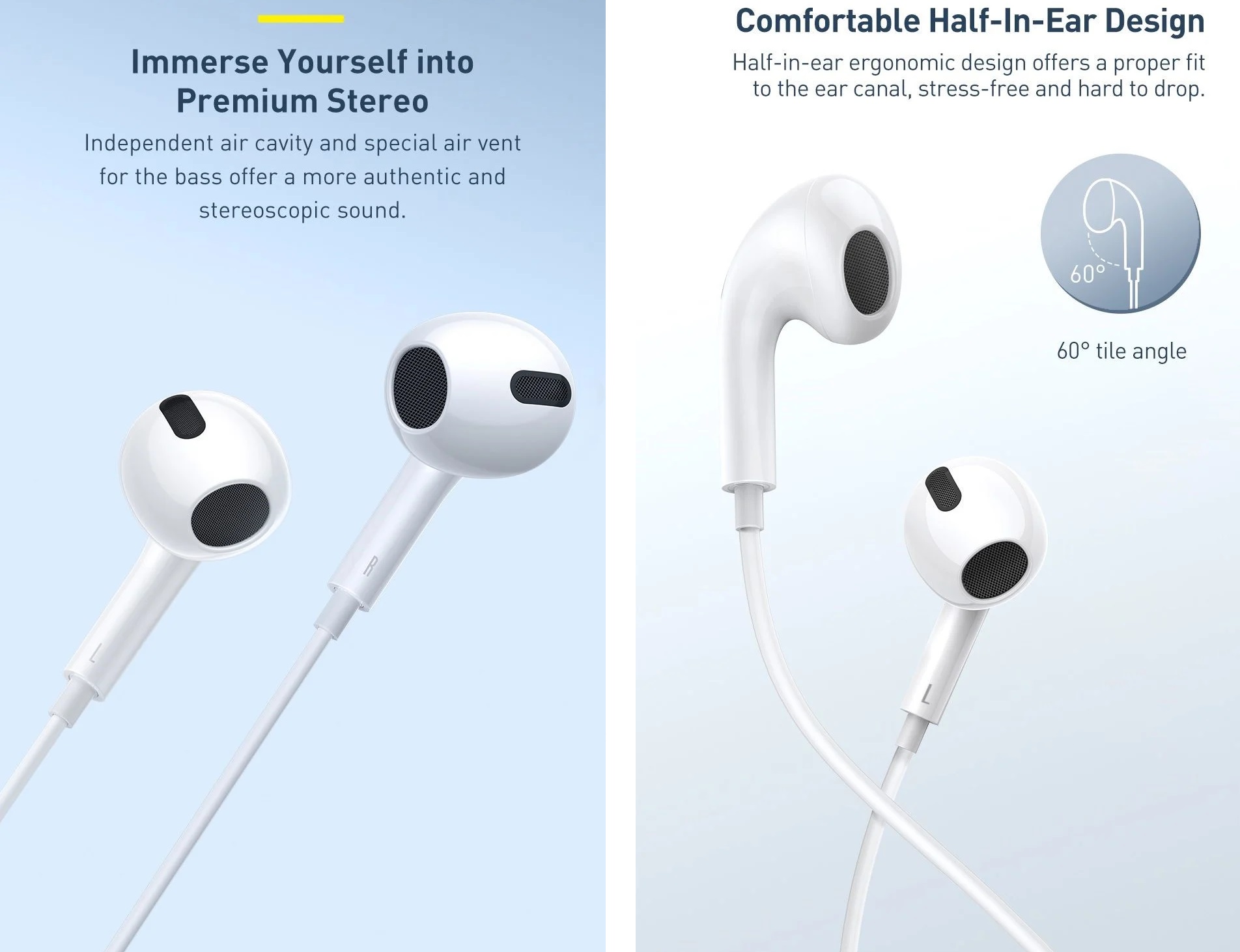 * Thương hiệu: BASEUS - Phong cách: Tai nghe - Xuất xứ: CN (Xuất xứ) - Nút điều khiển: Có - Khử ồn chủ động: Không - Giao tiếp: Có dây - Kiểm soát âm