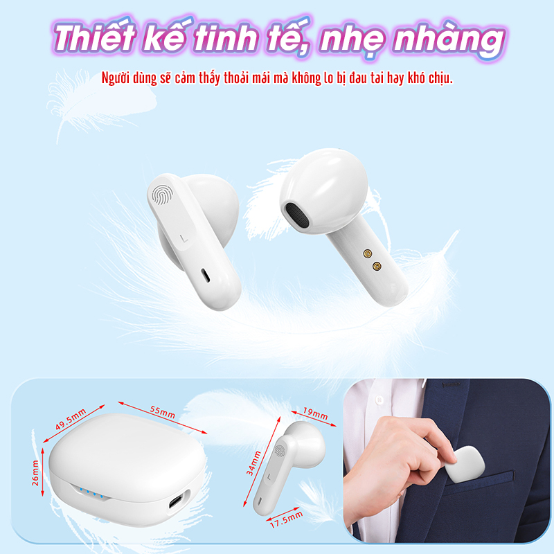 Trọng lượng nhẹ làm giảm áp lực cho tai, đeo thoải mái