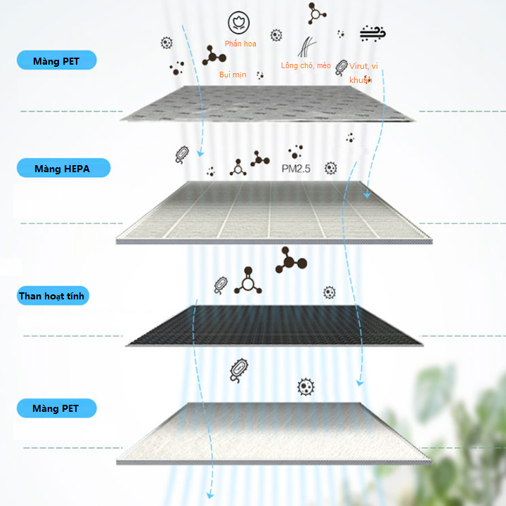 - Lọc sạch lông thú cưng, tóc, phấn hoa gây kích ứng, hơi TVOC trong các đồ nội thất, trong nhà mới, bảo vệ sức khỏe của bạn và cả gia đình