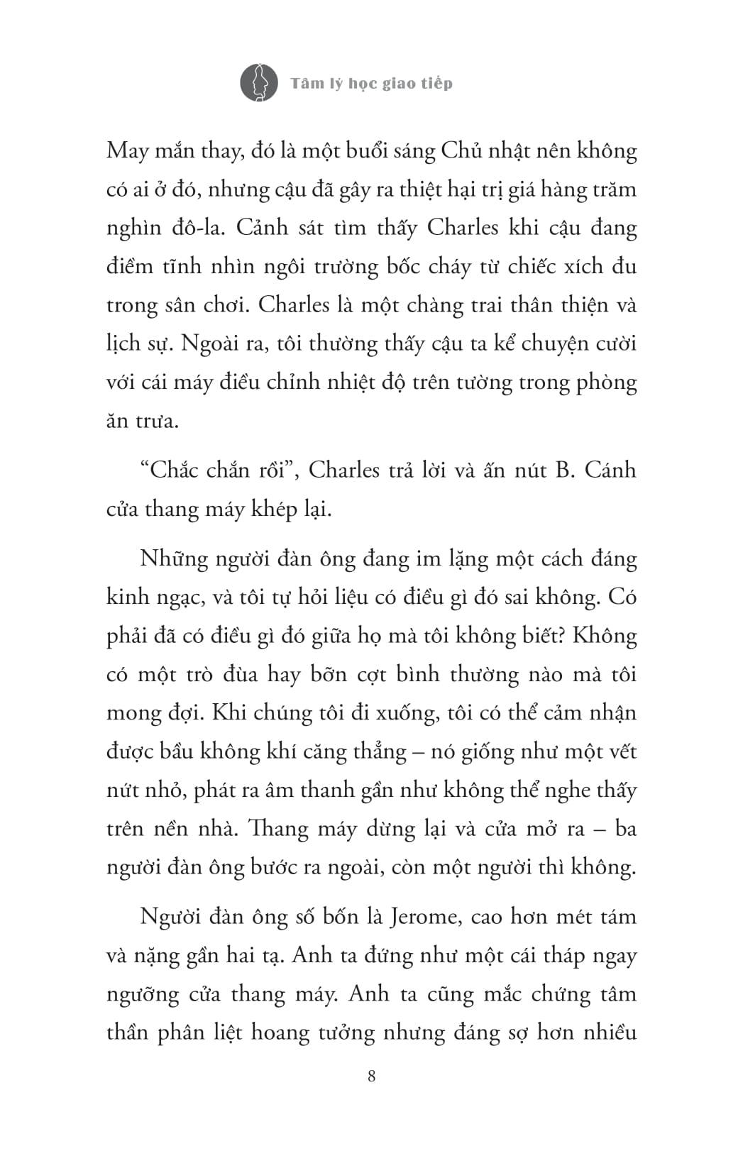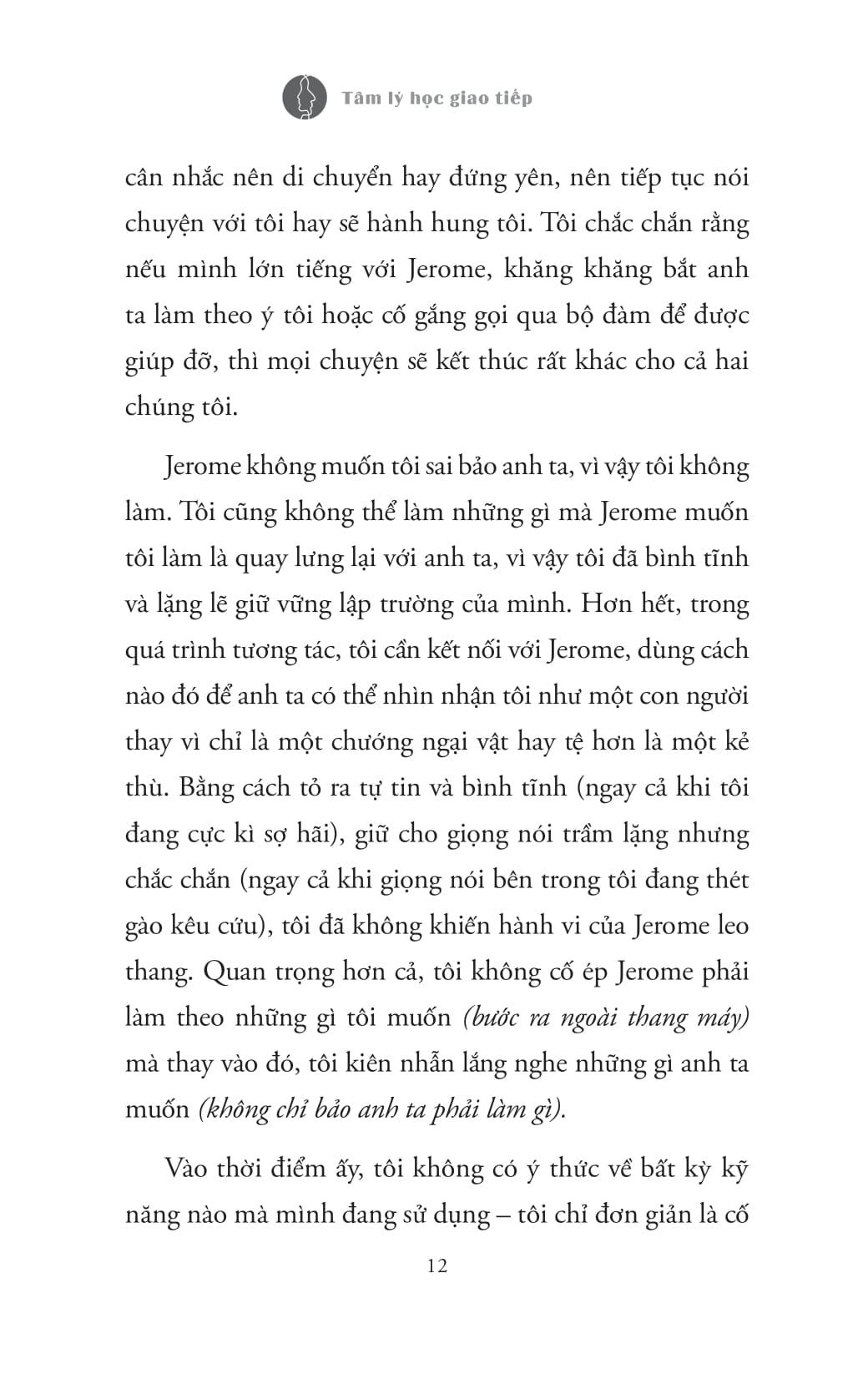 Trong cuốn sách “Tâm lý học giao tiếp” tiết lộ rằng mọi tương tác hay giao tiếp đều tuân theo bốn kiểu hành vi: Kiểm soát (sư tử), Khiêm nhường (chuột), Đối đầu (Khủng long) và Hợp tác (Khỉ). Ngay sau khi hiểu rõ phong cách và mục tiêu giao tiếp của riêng bạn, bạn có thể định hình bất kỳ cuộc trò chuyện nào theo ý muốn và tìm ra cách tạo dựng các mối quan hệ tức thì. Đồng thời còn chứa đầy những câu chuyện, lời khuyên thực tế và những ví dụ hấp dẫn, giúp bạn có thể định hình bất cứ cuộc trò chuyện nào theo ý muốn và tiến gần hơn đến bí mật thực sự: cách xây dựng mối quan hệ.
