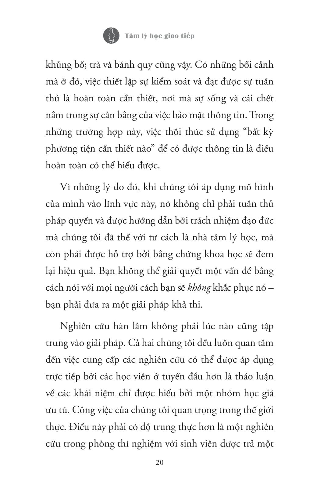 Tác giả Laurence và Emily Alison là những nhà lãnh đạo thế giới về Tâm lý học pháp y chuyên về những tương tác khó khăn nhất có thể tưởng tượng được: các cuộc thẩm vấn tội phạm. Họ tư vấn và đào tạo cho cảnh sát, lực lượng can thiệp an ninh, FBI và CIA về cách đối phó với những nghi phạm cực kỳ nguy hiểm rủi ro cao. Cuốn sách này là sản phẩm kết tinh của 30 năm làm việc, với hơn 2.000 giờ thẩm vấn khủng bố. Mô hình giao tiếp liên nhân đầy đột phá mà họ giới thiệu trong cuốn sách này có thể giúp độc giả xử lý bất kỳ cuộc chạm trán nào: từ đứa con ương bướng ở nhà hay những tên du côn ngoài phố.