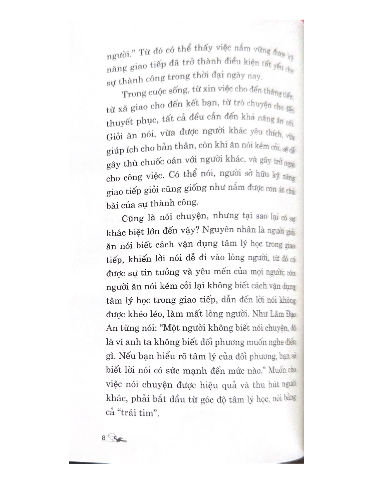 - Giới thiệu Tâm Lý Học Giao Tiếp Trong đời người, từ xin việc cho đến thăng chức, từ xã giao cho đến kết bạn, từ trò chuyện cho đến thuyết phục, tất cả đều cần đến khả năng ăn nói. Do đó, người nắm bắt được kỹ năng giao tiếp cũng giống như có được con át chủ bài của sự thành công. “Tâm lý học giao tiếp” tập trung phân tích các hiệu ứng tâm lý và các bí quyết giao tiếp, giải mã tâm hồn đối phương. Đồng thời giúp bạn vận dụng lý thuyết tâm lý học vào những trường hợp giao tiếp thực tế trong cuộc sống. Cách giải quyết các tình huống khó xử, cách nhờ vả, đàm phán, diễn thuyết, bán hàng, phỏng vấn, cách ứng xử với lãnh đạo, cấp dưới, đồng nghiệp và cả người yêu, đều sẽ được lý giải trong từng ví dụ cụ thể.