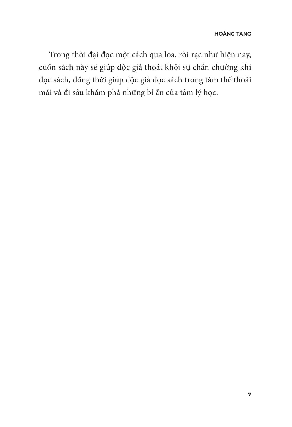 Thông qua cuốn sách được minh họa sinh động này, bạn có thể dễ dàng nắm bắt các thuật ngữ chuyên ngành tâm lý học, hiểu được động cơ ẩn giấu sau những hành vi, đọc vị cảm xúc của người khác, đồng thời hiểu rõ những vấn đề của chính m.ình.