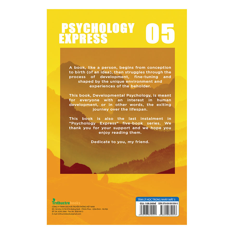 Tâm Lý Học Trong Nháy Mắt (Tập 5) là cuốn cuối cùng trong series đình đám Tâm lý học trong nháy mắt. Với nội dung về Tâm lý học phát triển cung cấp cho người đọc cái nhìn toàn diện về hành trình cuộc đời của mỗi con người. Như những tập trước đó, cuốn sách này cũng có những thẻ học từ flashcards đi kèm. Cùng với nội dung lý thú sẽ là những phần minh họa ngộ nghĩnh, bắt mắt sáng tạo giúp cho những thuật ngữ khô khan trở nên "dễ tiêu" hơn.