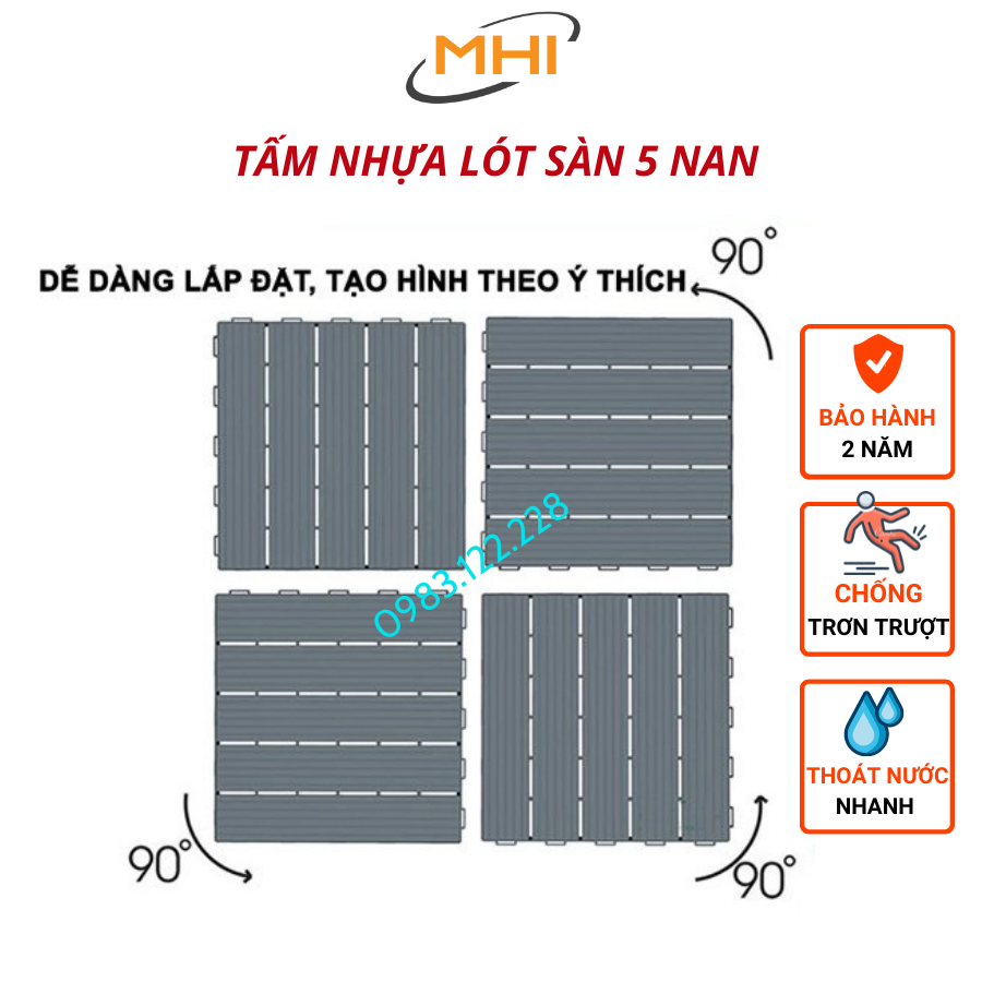 Sản phẩm lót sàn PP kích thước 30 cm x 30 cm x 2 cm là 1 dòng sản phẩm đặc biệt để giúp người tiêu dùng tối ưu về mặt chi phí, giá thành mà vẫn mang lại không gian decor rất chill. Đây là một sự lựa chọn hoàn hảo: Chống trơn trợt, không hấp thụ tia cực tím, không thấm nước, Chịu lực cực tốt, Bền màu, hoàn toàn an toàn và thân thiện với môi trường là lựa chọn tuyệt hảo cho các ban công, hồ bơi, nhà vệ sinh, sân vườn, Phòng khách.